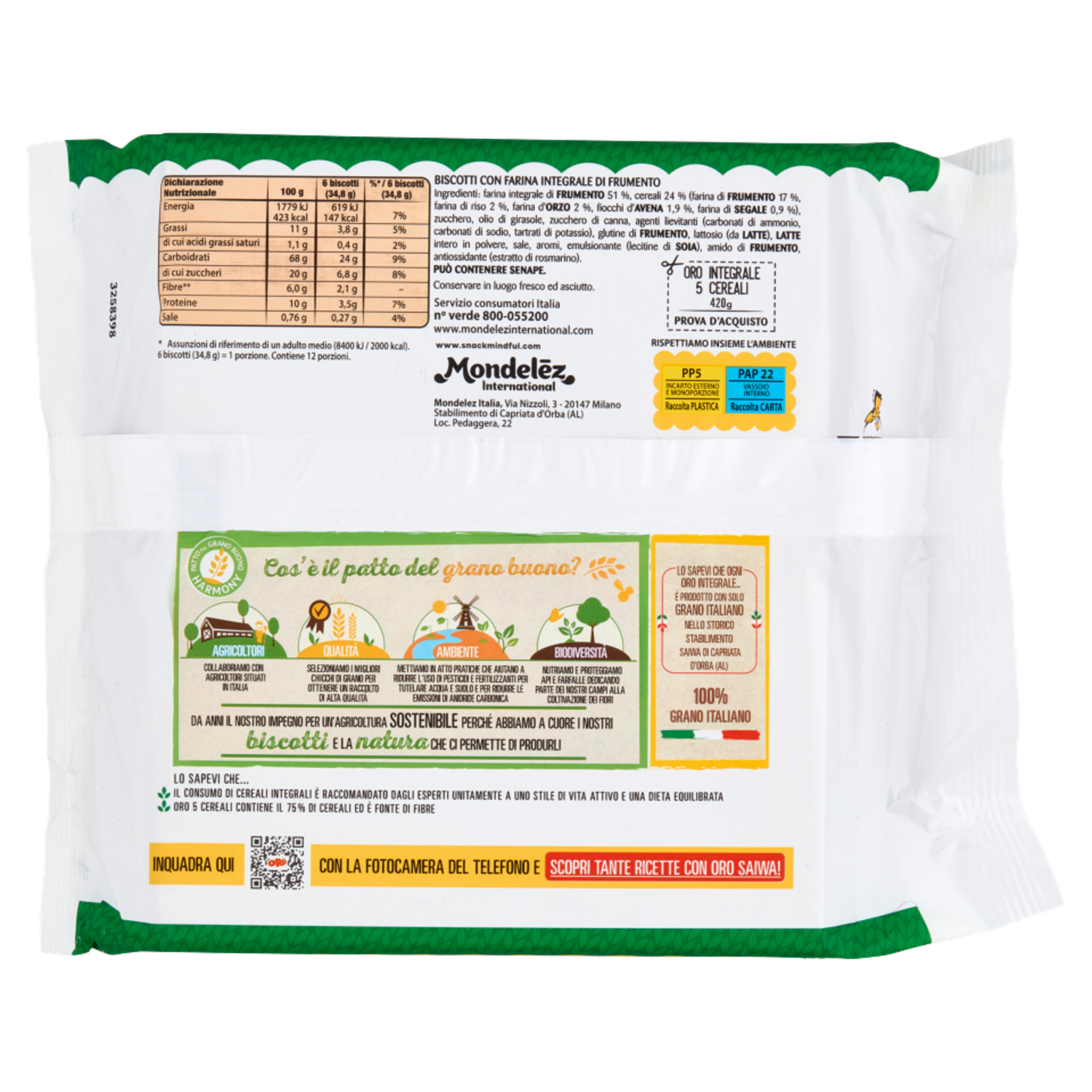 Oro Saiwa biscotti secchi 5 Cereali - 420 g
