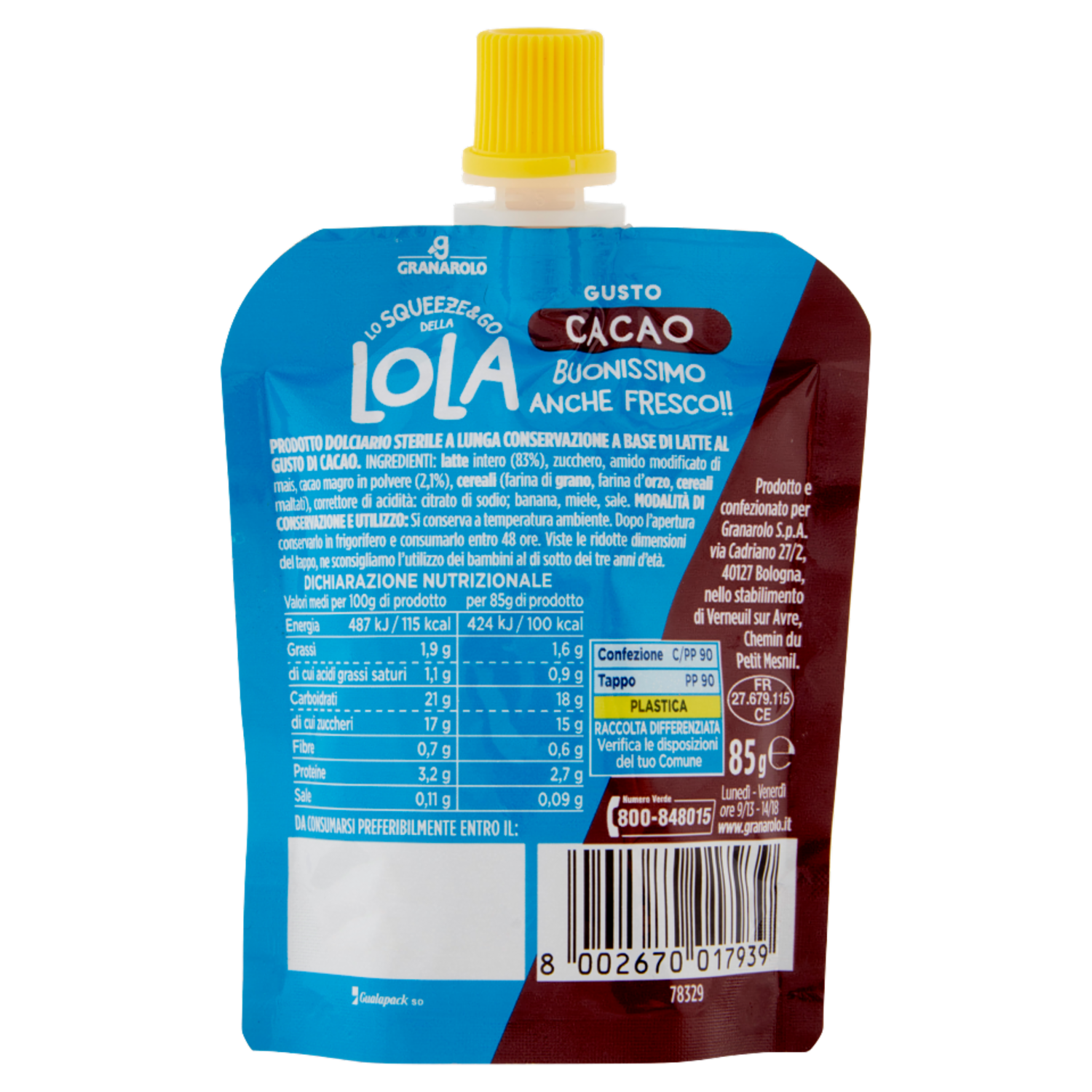 Granarolo lo Squeeze&go della Lola Gusto Cacao 85 g