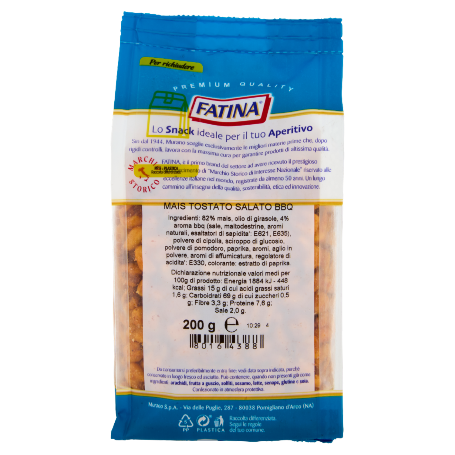 Fatina Snack Croccante Mais Tostato Salato BBQ 200 g