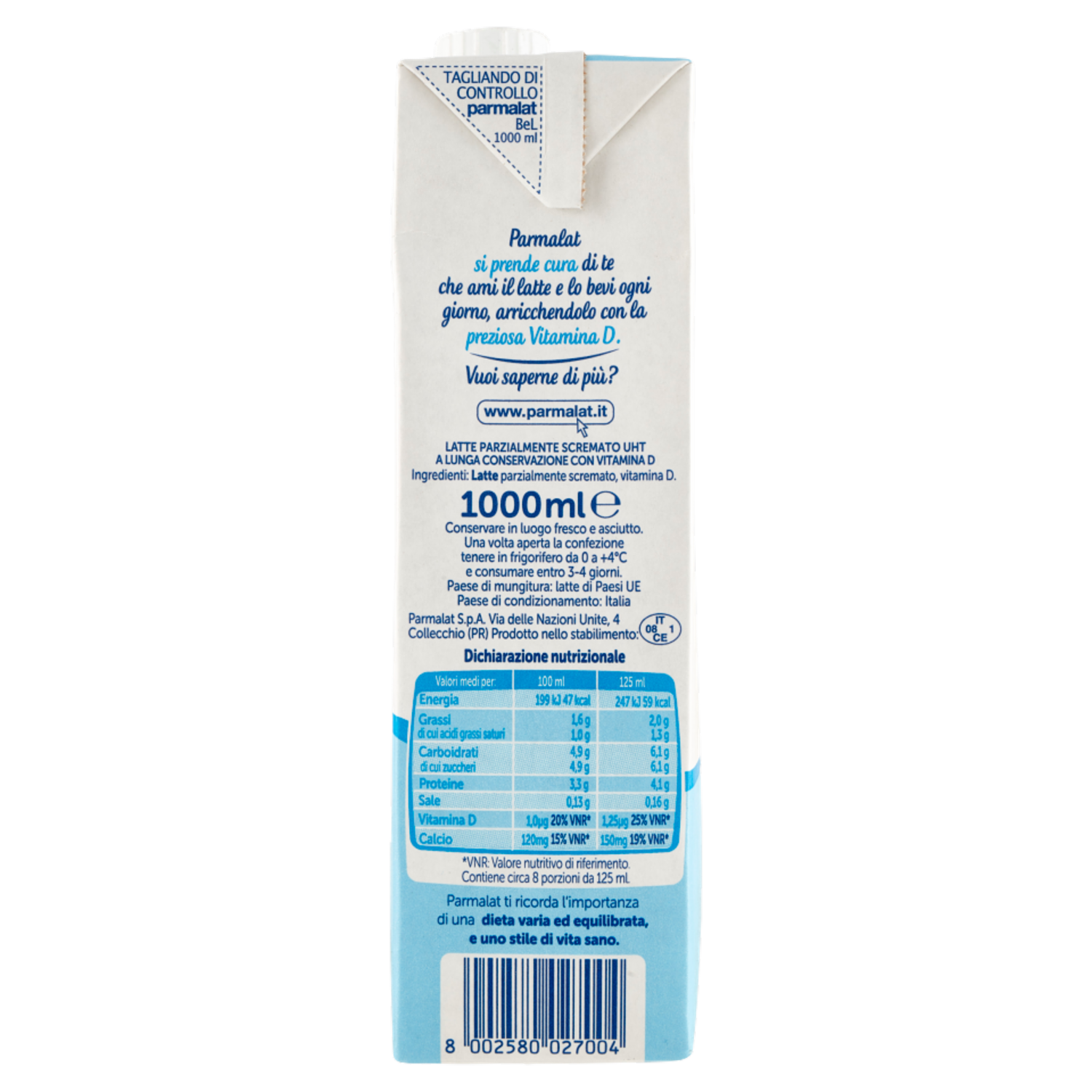 parmalat Bontà e Linea con Vitamina D Latte Parzialmente Scremato 1000 ml