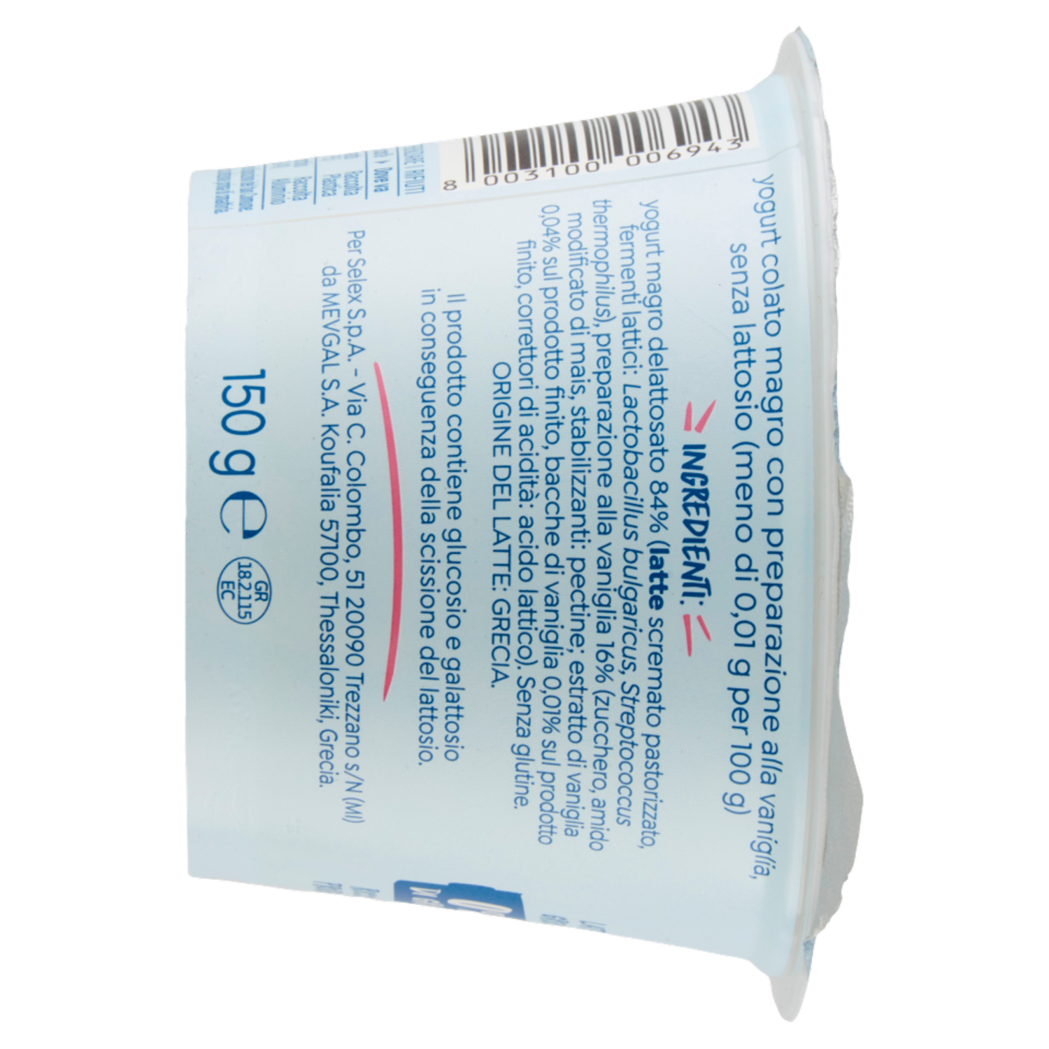Selex Vivi Bene Yogurt Greco Vaniglia Senza Lattosio 150 g