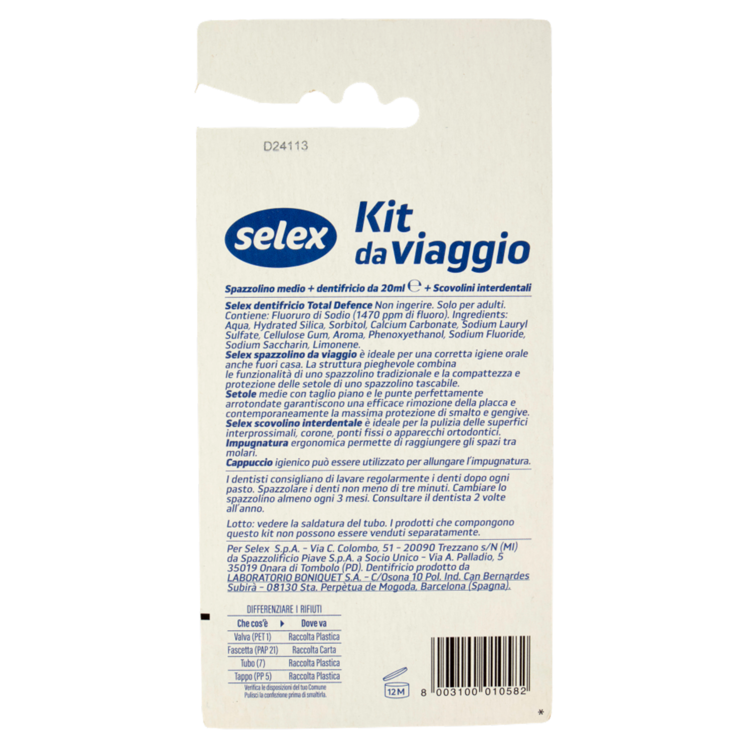 Selex Kit Igiene Orale Dentifricio, Spazzolino Medio e Scovolino