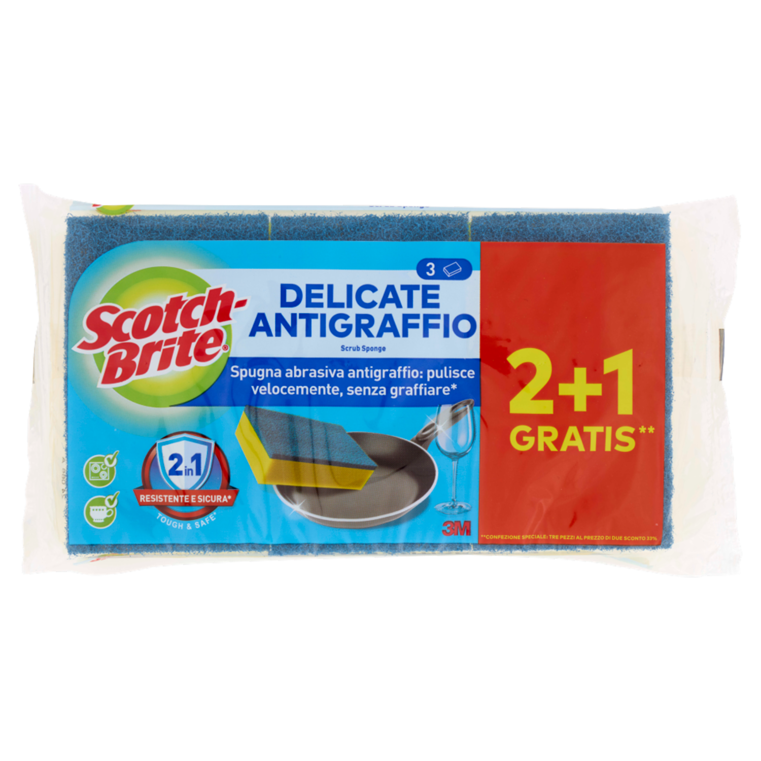 Scotch-Brite® Spugna abrasiva delicata antigraffio, 2 pezzi per confezione + 1 gratis**
