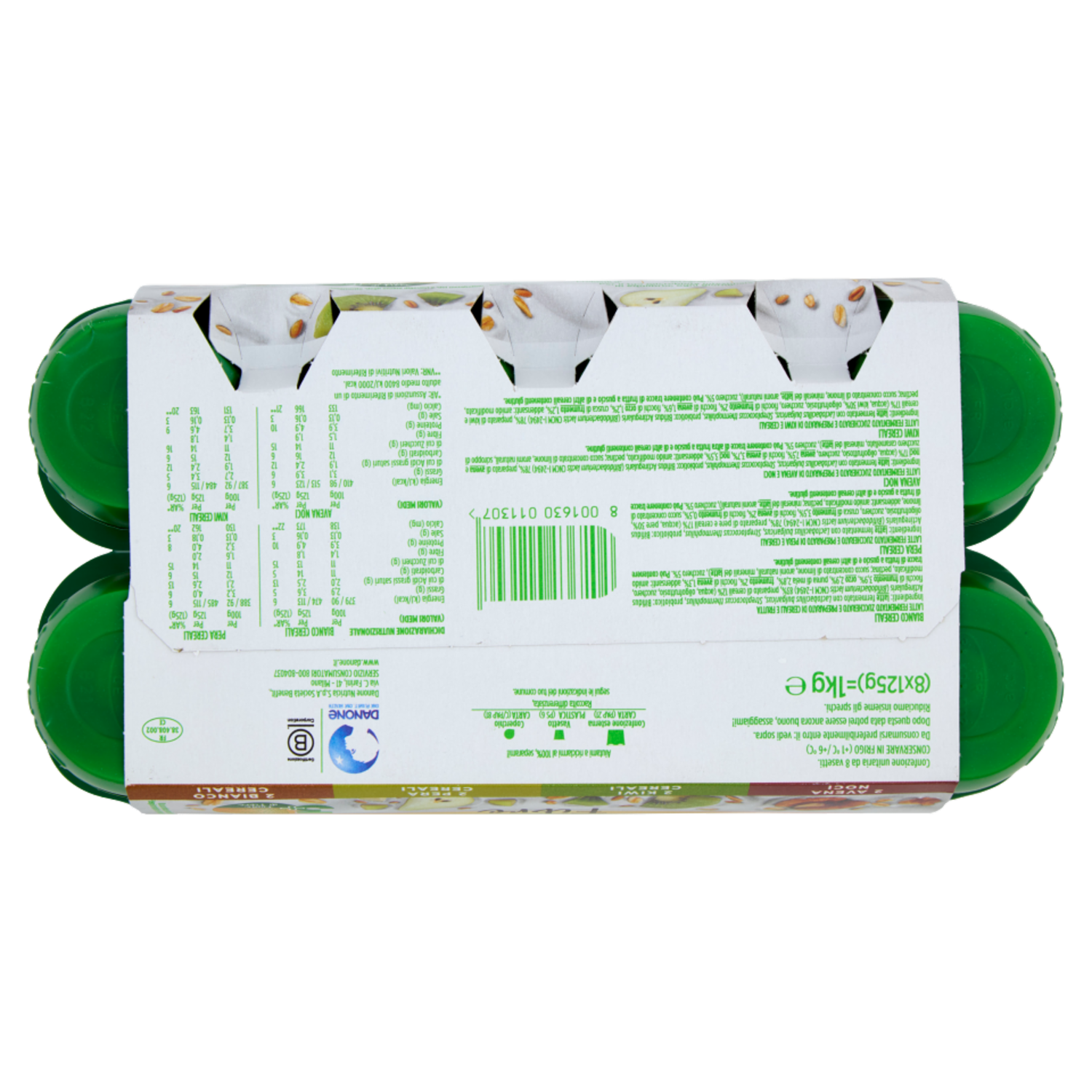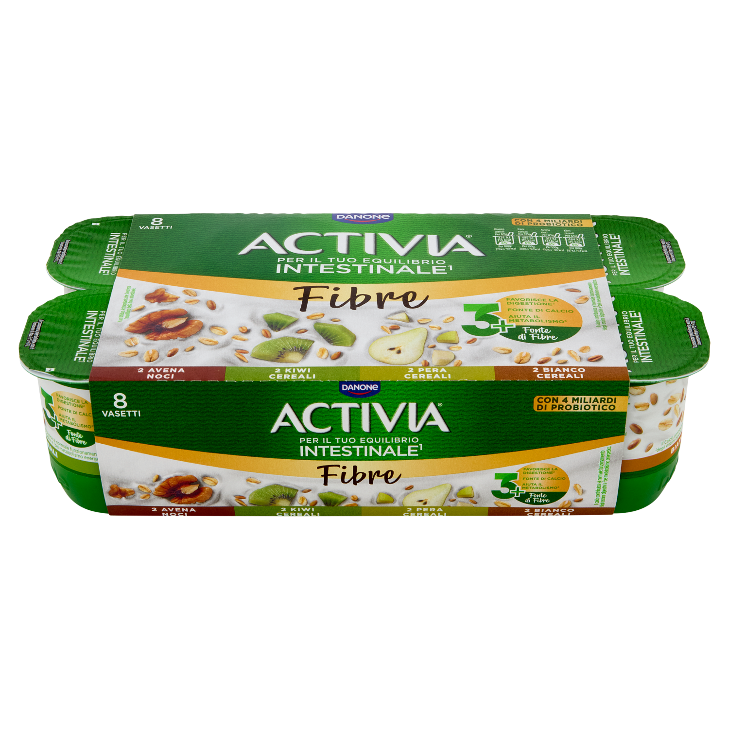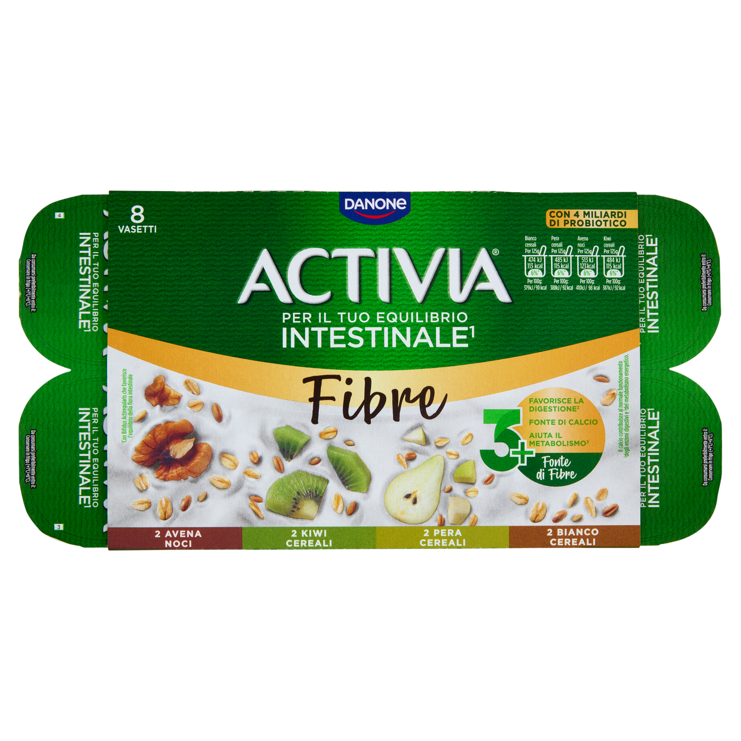 ACTIVIA Fibre e Frutta,Yogurt con Probiotico Bifidus,mix Cereali Bianco/Pera/Avena Noci/Kiwi,8x125g