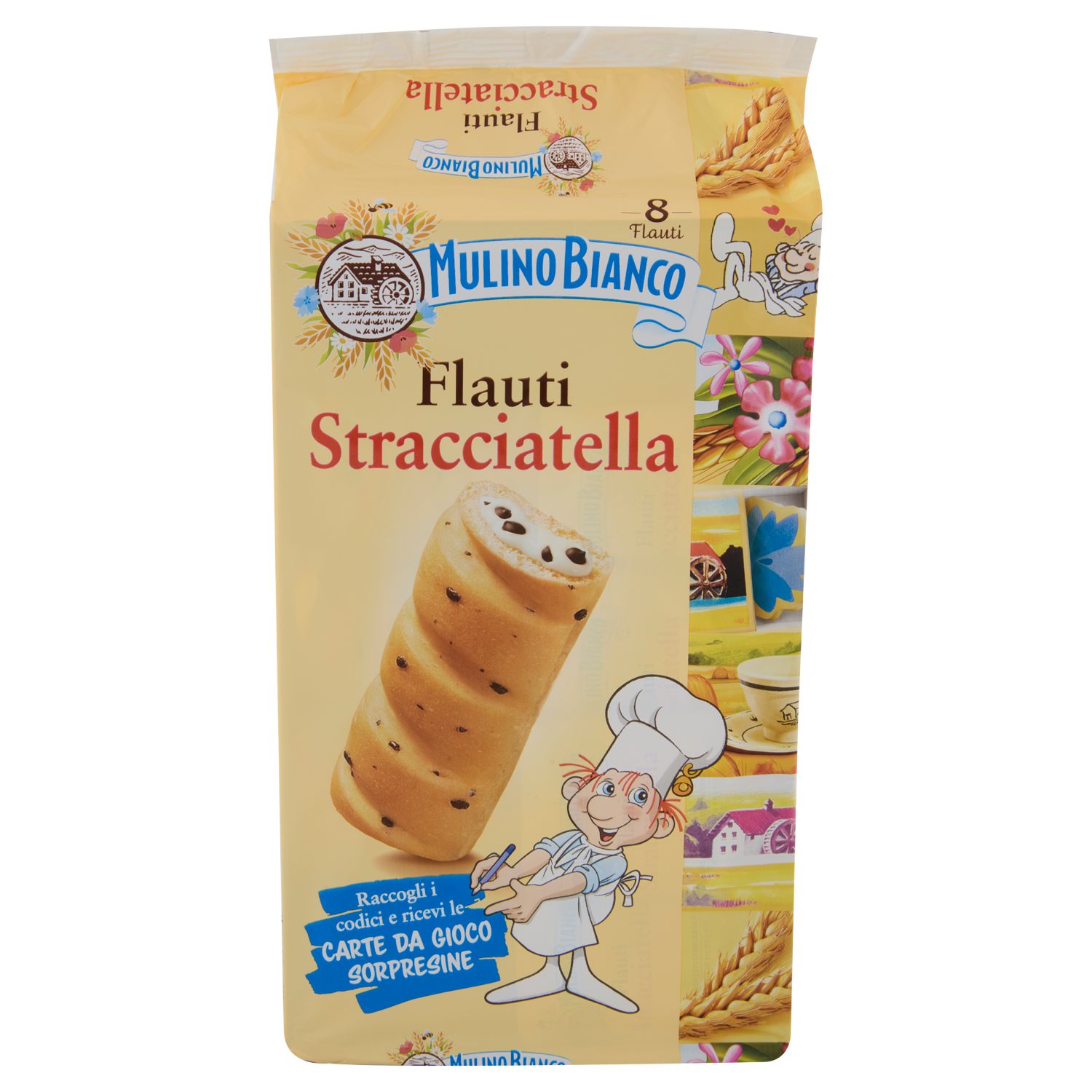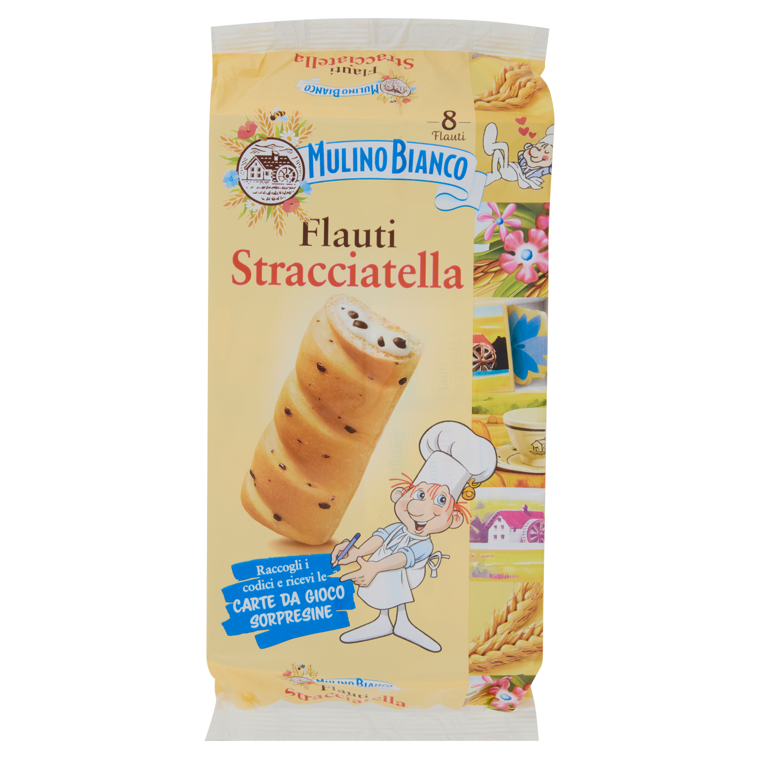 Mulino Bianco Flauti Stracciatella Merenda con 100% Latte Fresco Italiano 8 pezzi 280g