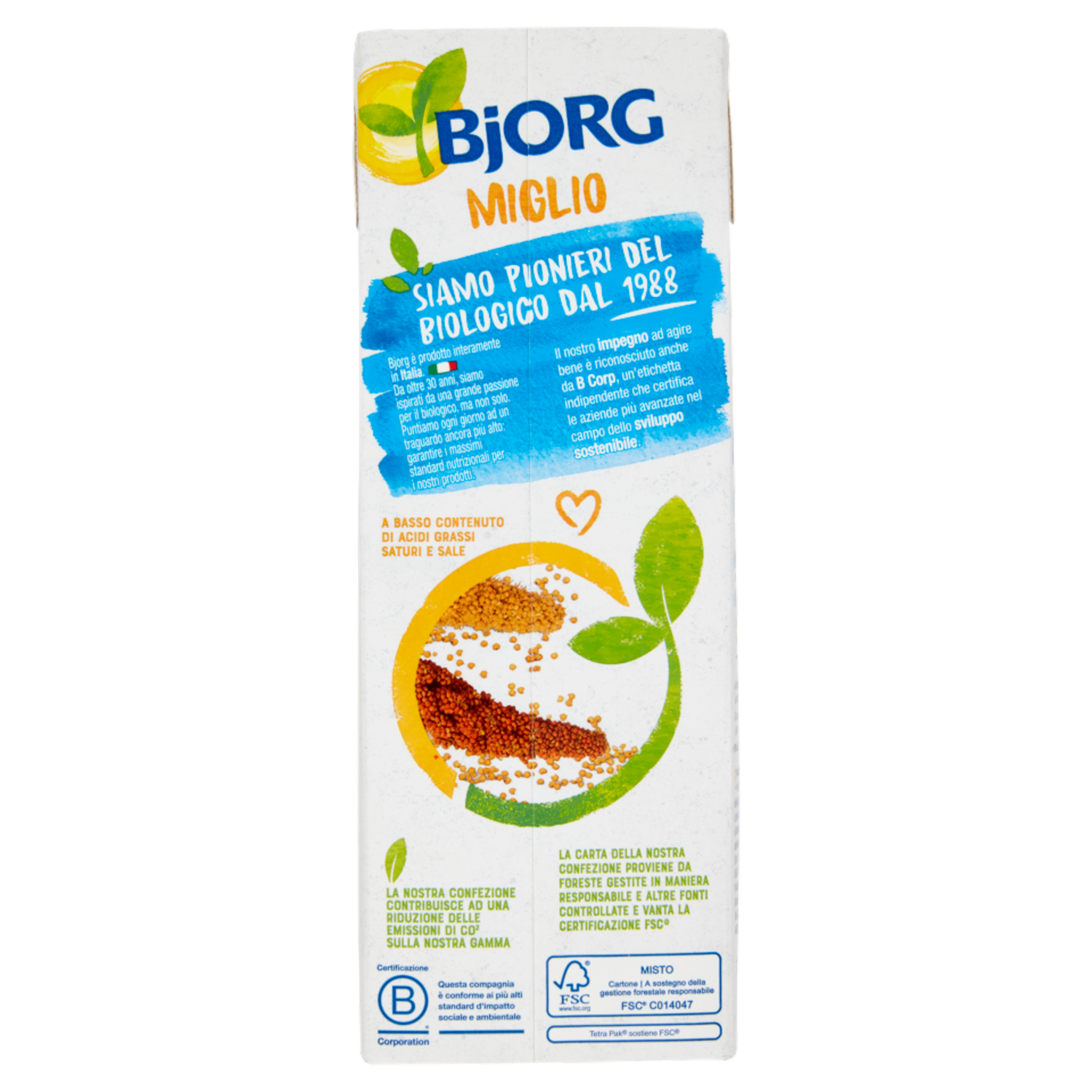 BJORG Miglio Bevanda Vegetale Bio, Senza Glutine, Senza Zuccheri Aggiunti, Prodotto in Italia, 1L
