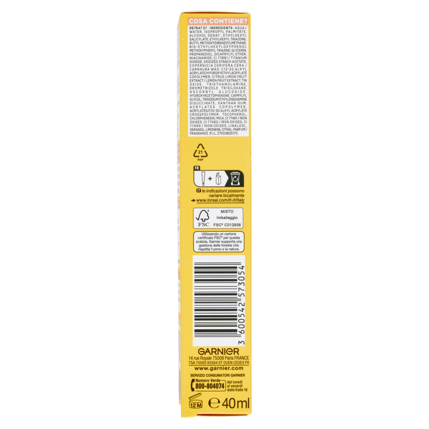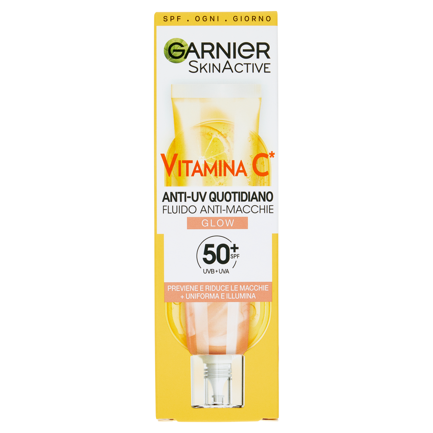 Garnier SkinActive Vitamina C Fluido Anti-UV Anti-Macchie Glow SPF 50+, 40ml