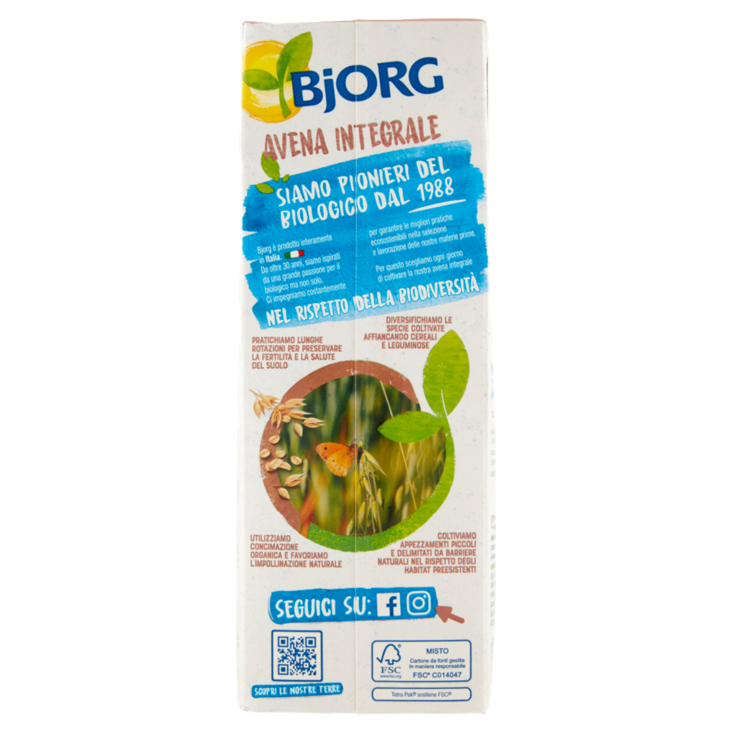 BJORG Avena Integrale Bevanda Vegetale Biologica, Senza Zuccheri Aggiunti, Prodotto in Italia, 1L