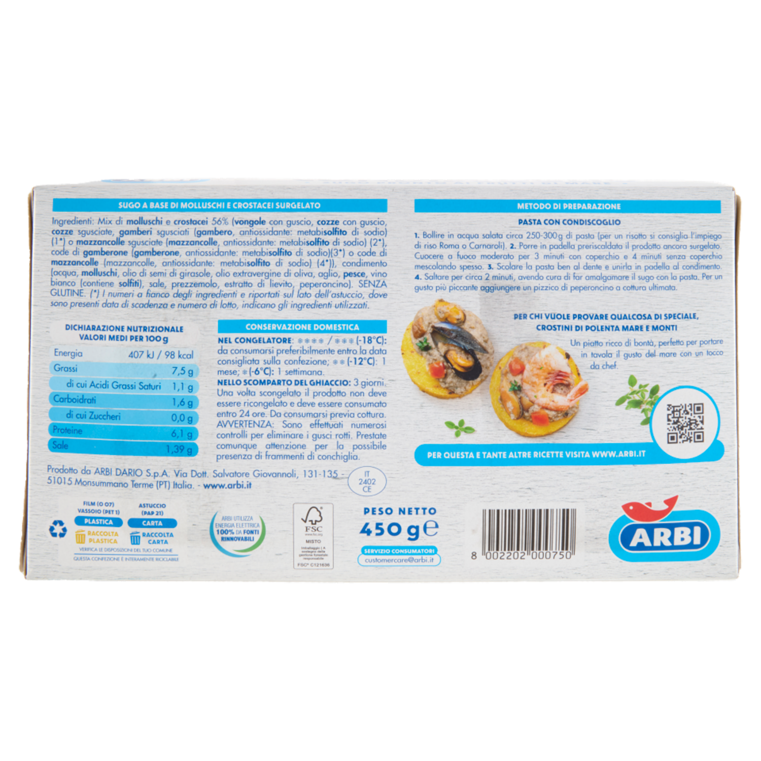 Arbi Condiscoglio Sugo Pronto ai Frutti di Mare 450 g