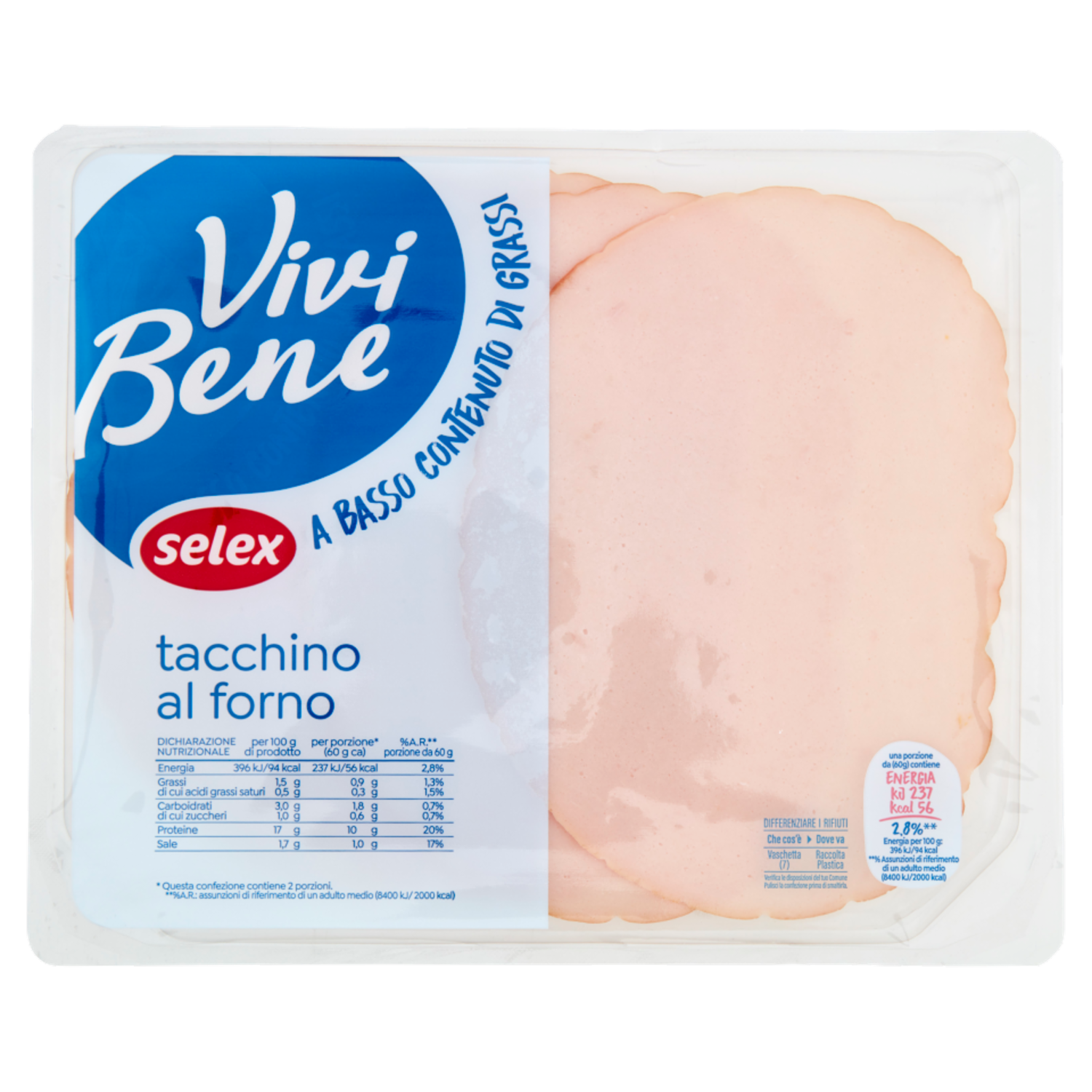 Selex Vivi Bene Tacchino al Forno a Basso Contenuto di Grassi a Fette 120 g