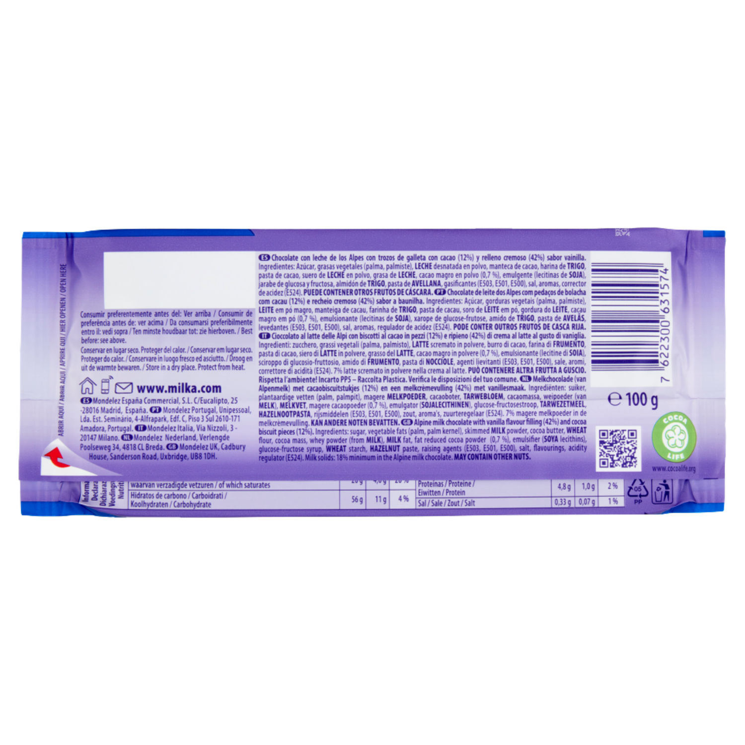 Milka Oreo, tavoletta di cioccolato al latte 100% alpino ripieno di crema Oreo - 100g
