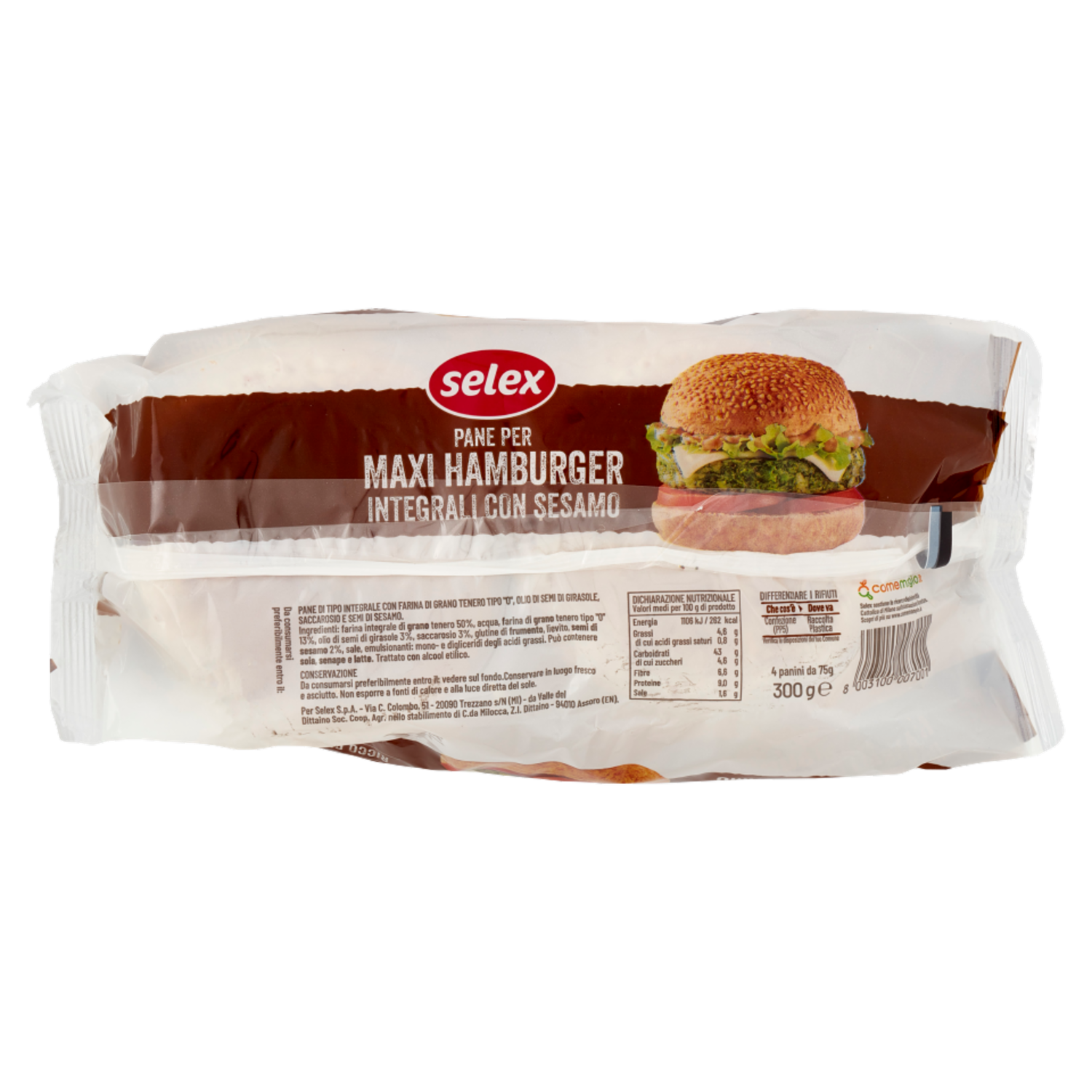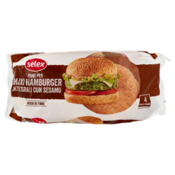 Selex Pane per Maxi Hamburger Integrali con Sesamo 4 pezzi 300 g