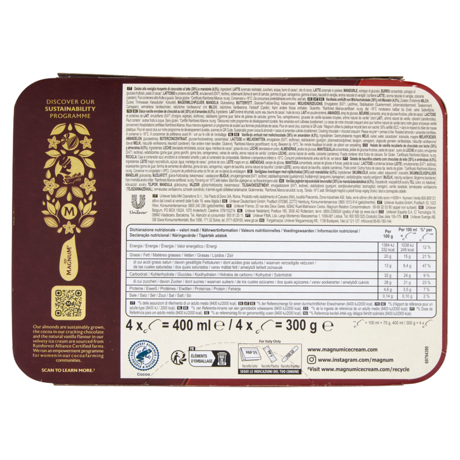 Magnum Almond 4 gelati 300 g