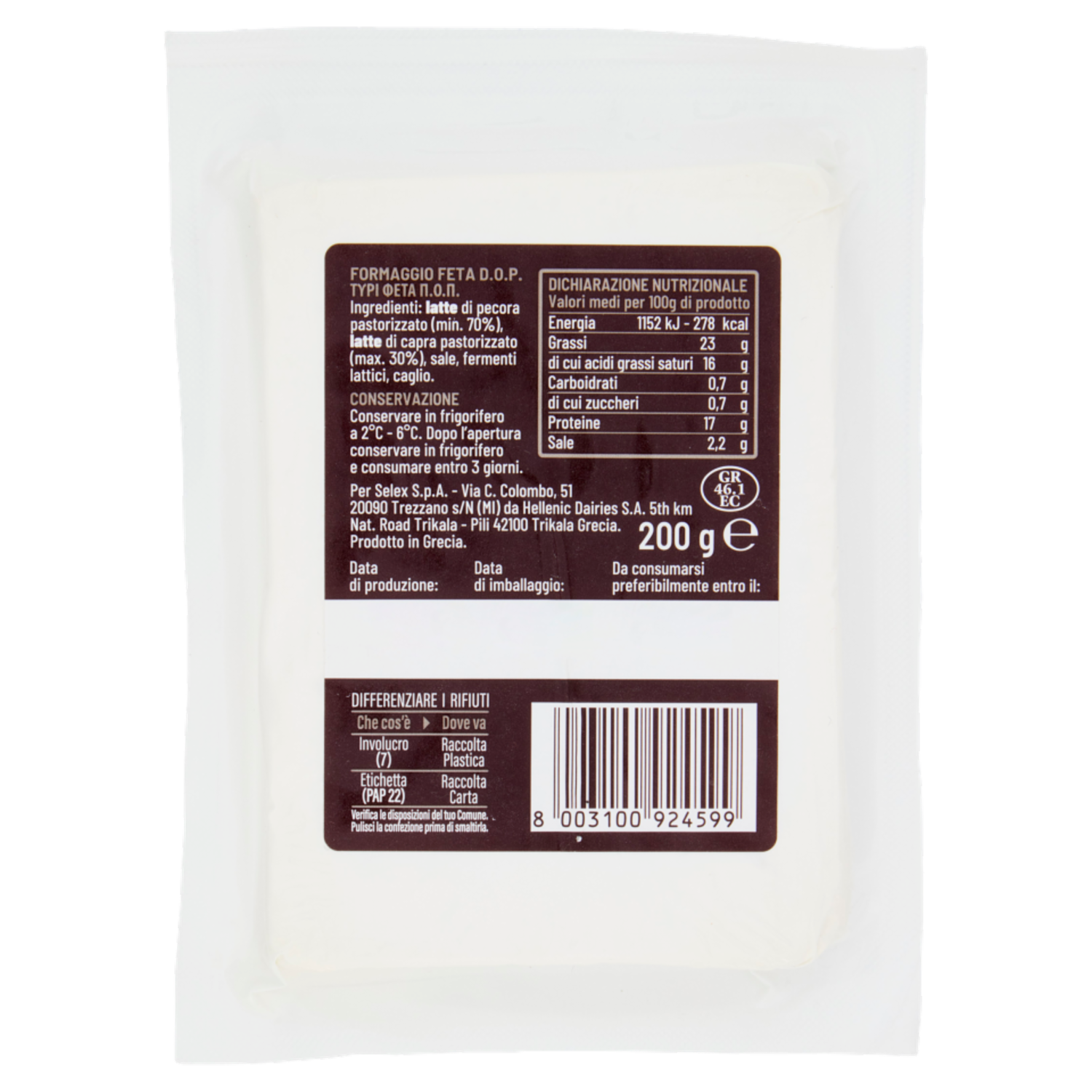 Selex Saper di Sapori Formaggio Feta Greca D.O.P. 200 g