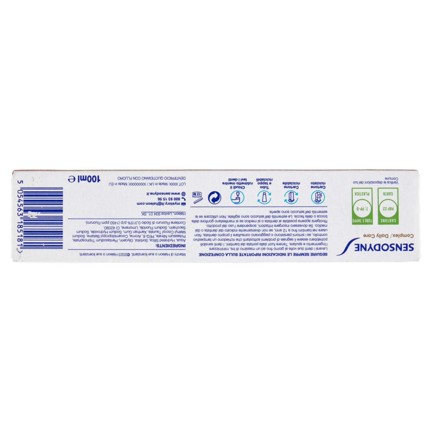 Sensodyne Dentifricio Complex/Daily Care per Denti Sensibili Tripla Azione di Pulizia 100 ml