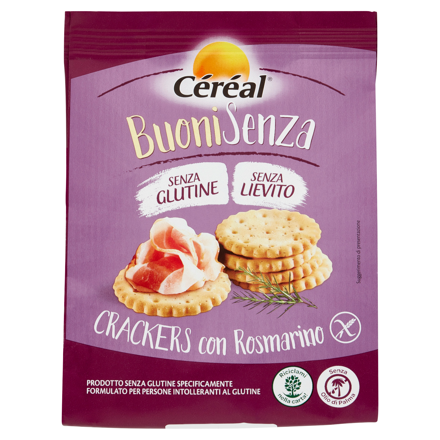 Céréal BuoniSenza Crackers con Rosmarino, Senza Glutine e Senza Lievito - 150 g