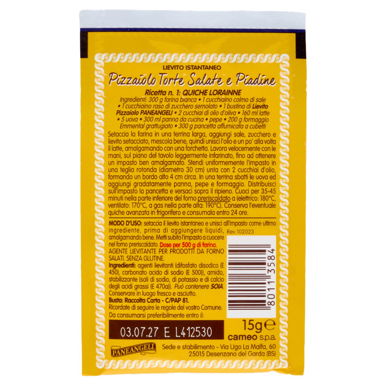 PANEANGELI Lievito Istantaneo Pizzaiolo Torte Salate e Piadine 15 g
