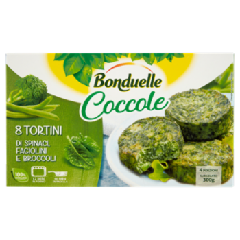 Bonduelle Coccole 8 Tortini di Spinaci, Fagiolini e Broccoli Surgelato 300 g