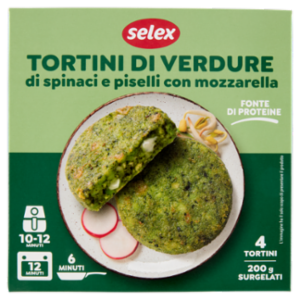 Selex Tortini di Verdure di Spinaci e Piselli con Mozzarella Surgelati 4x50 g