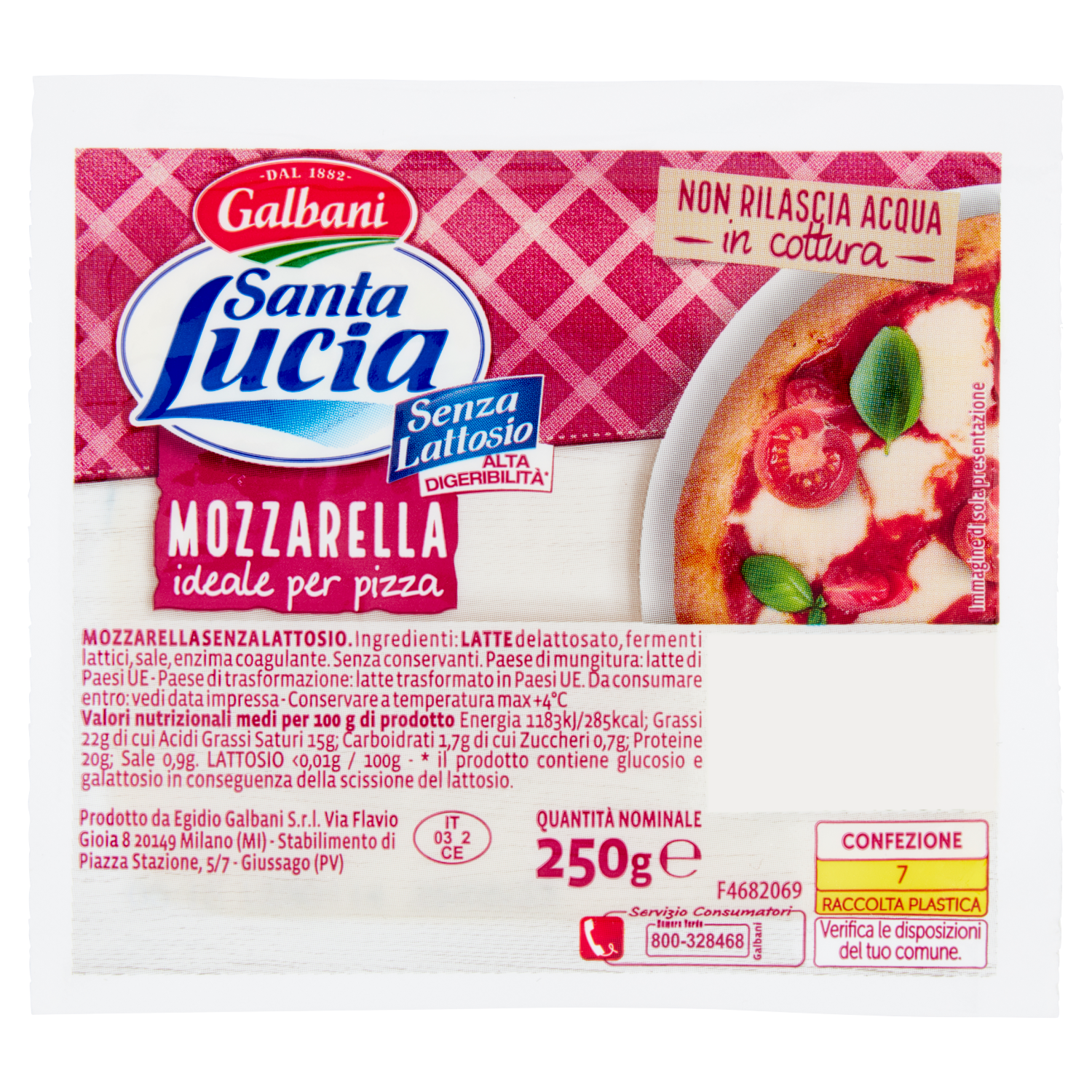Galbani Santa Lucia Mozzarella ideale per pizza Senza Lattosio 250 g