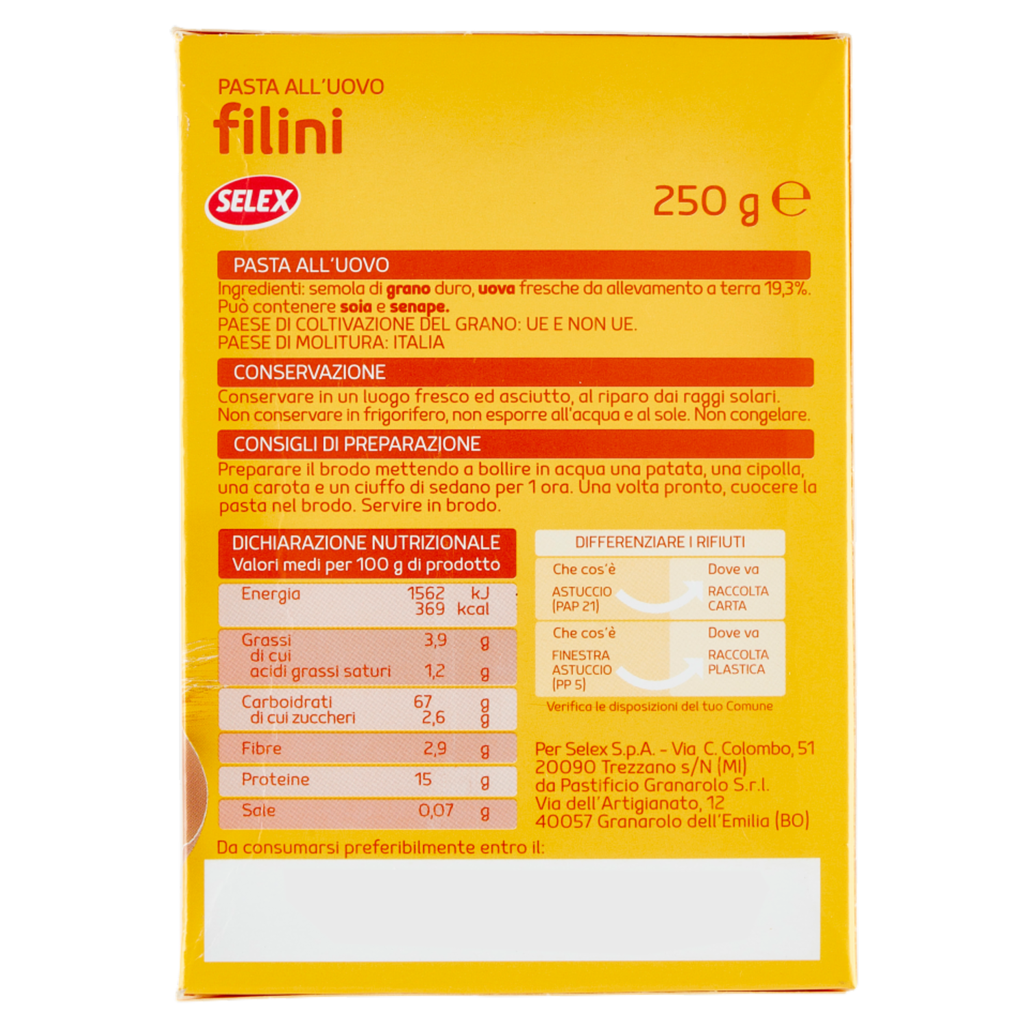 Selex Pasta all'Uovo Filini 250 g