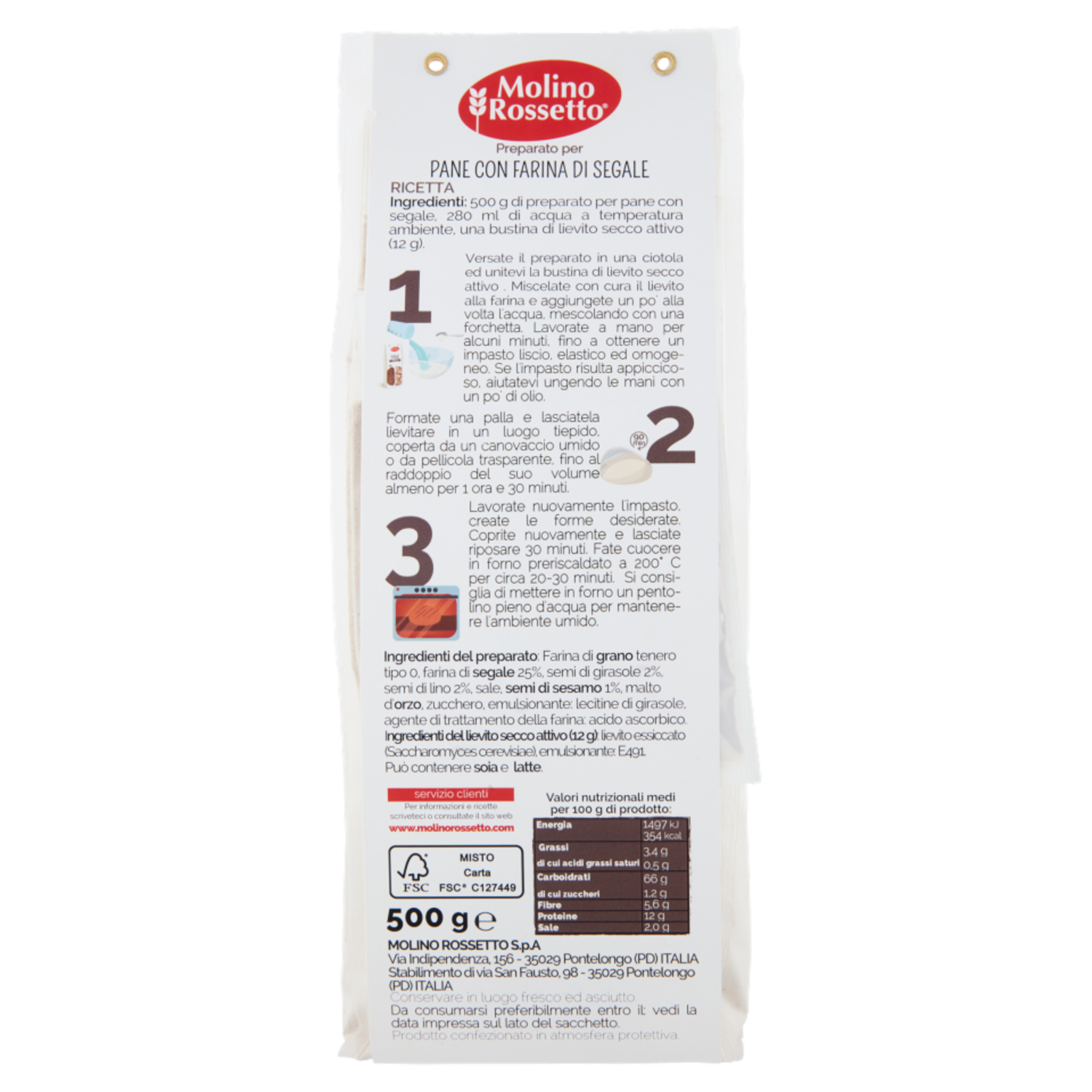 Molino Rossetto Preparato per Pane Segale 500 g