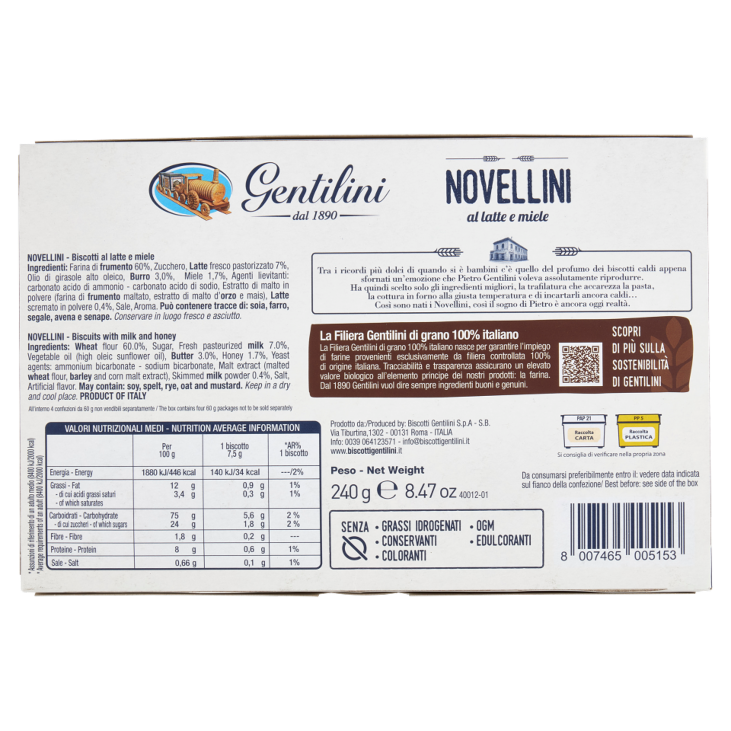 Gentilini Novellini al latte e miele 4 x 60 g
