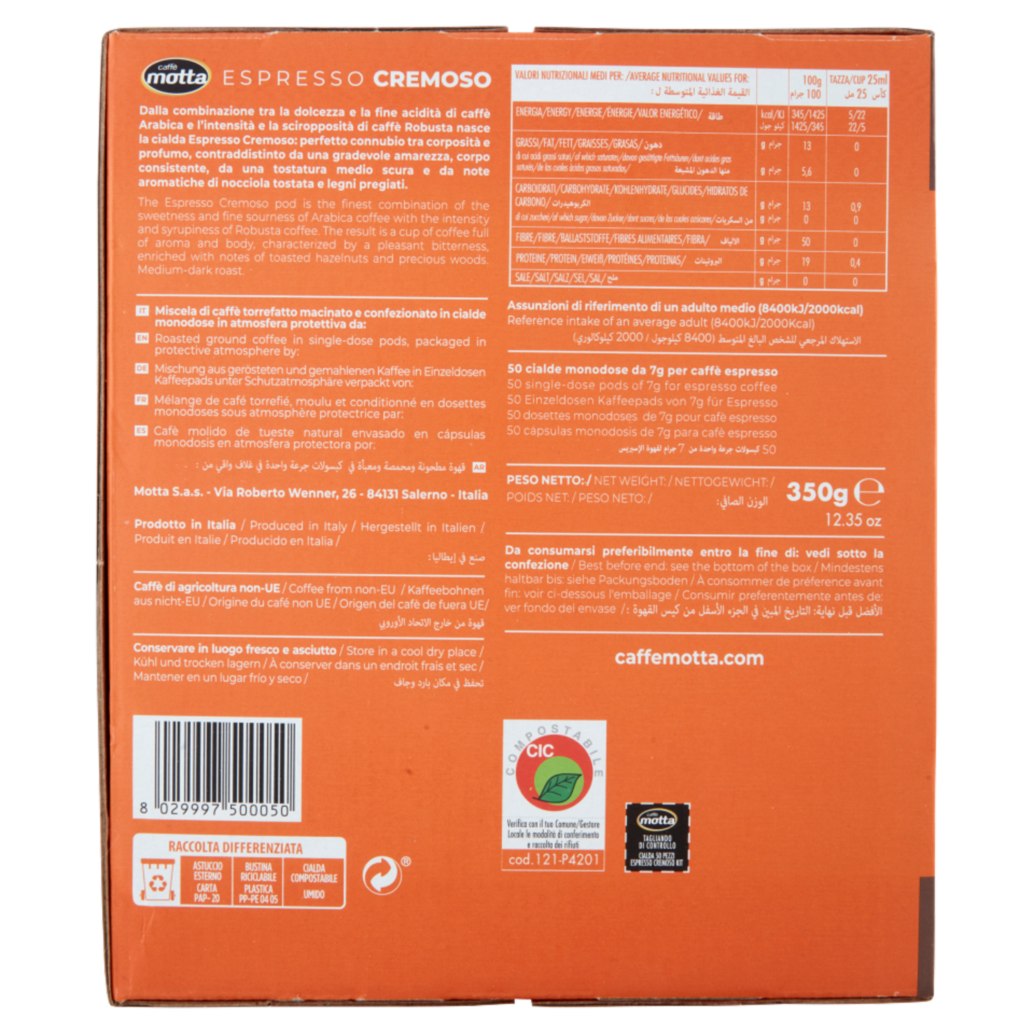 caffè motta Espresso Cremoso Kit Accessori + Cialde Universali Compostabili 50 x 7 g
