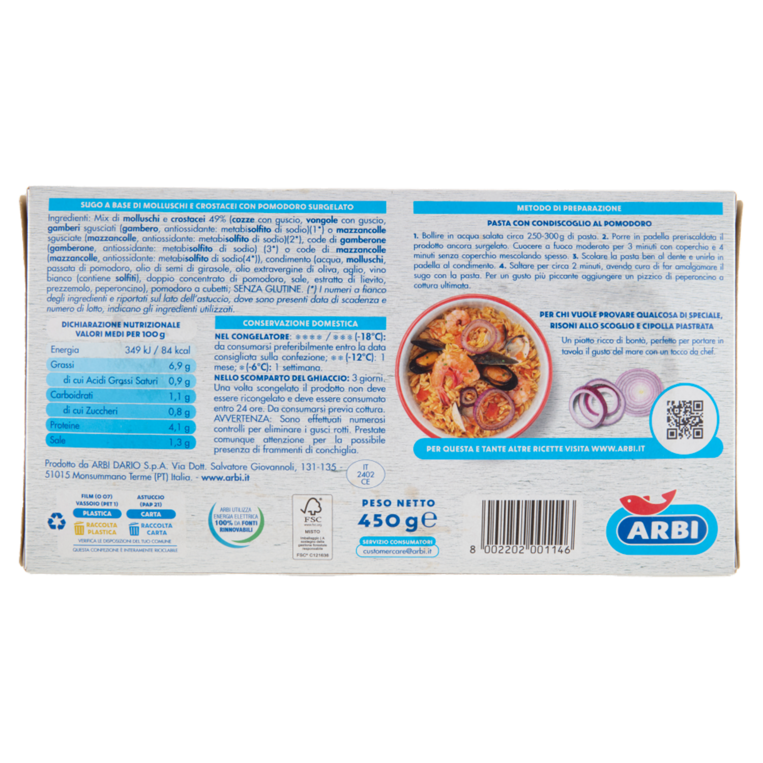 Arbi Condiscoglio al Pomodoro Sugo Pronto ai Frutti di Mare 450 g