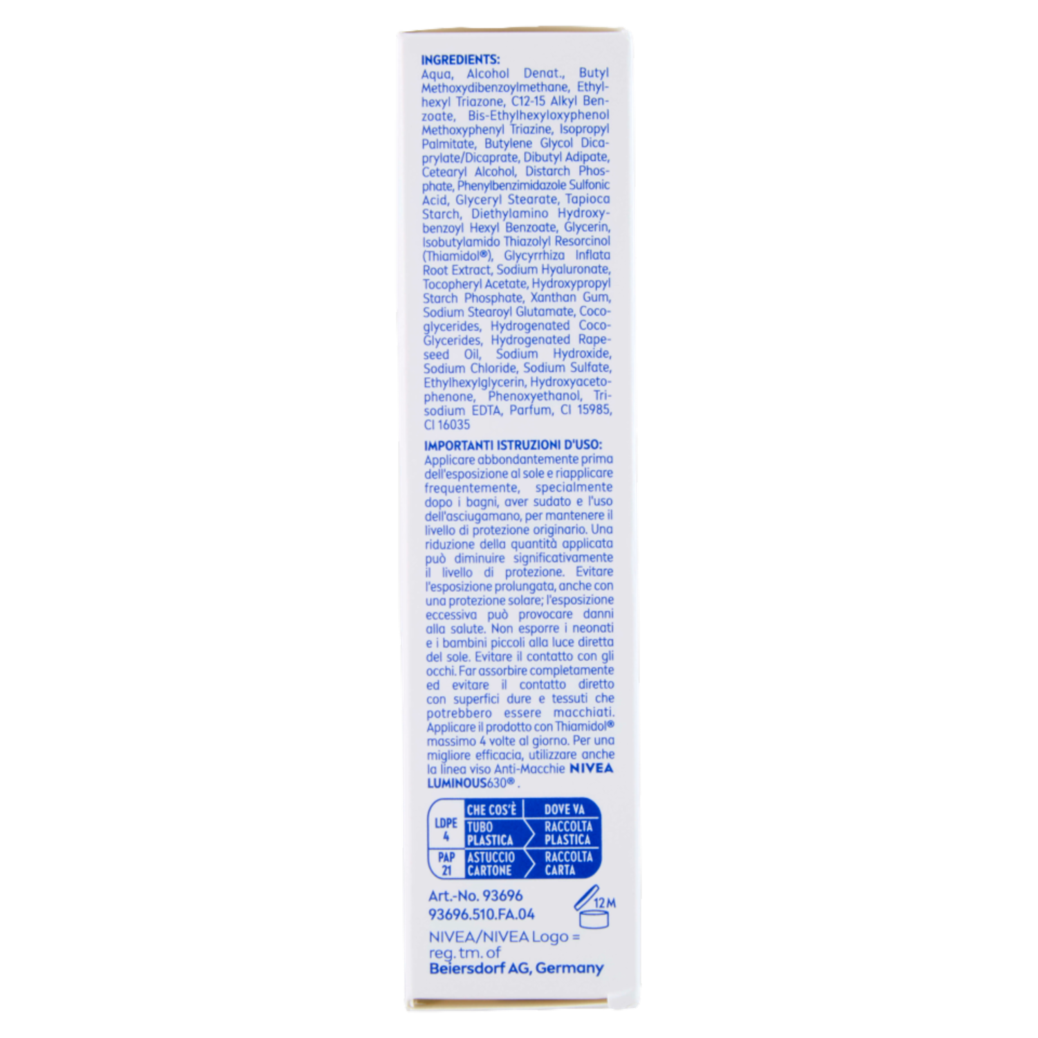 Nivea Sun UV Viso Specialist Anti Macchie Lumionous 630 50+ Molto Alta Fluido solare 40 ml