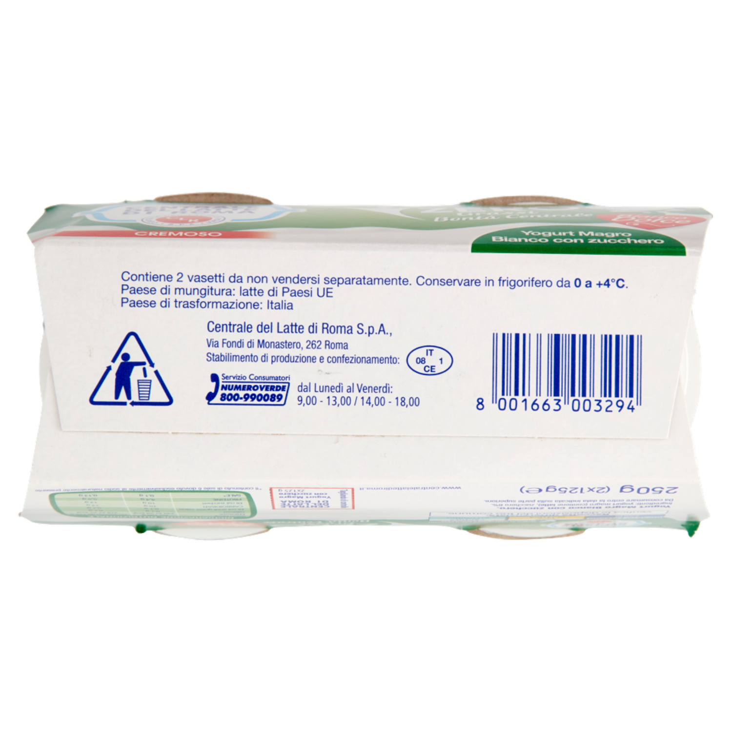 Centrale del Latte di Roma Zero Grassi Yogurt Magro Bianco con zucchero 2 x 125 g