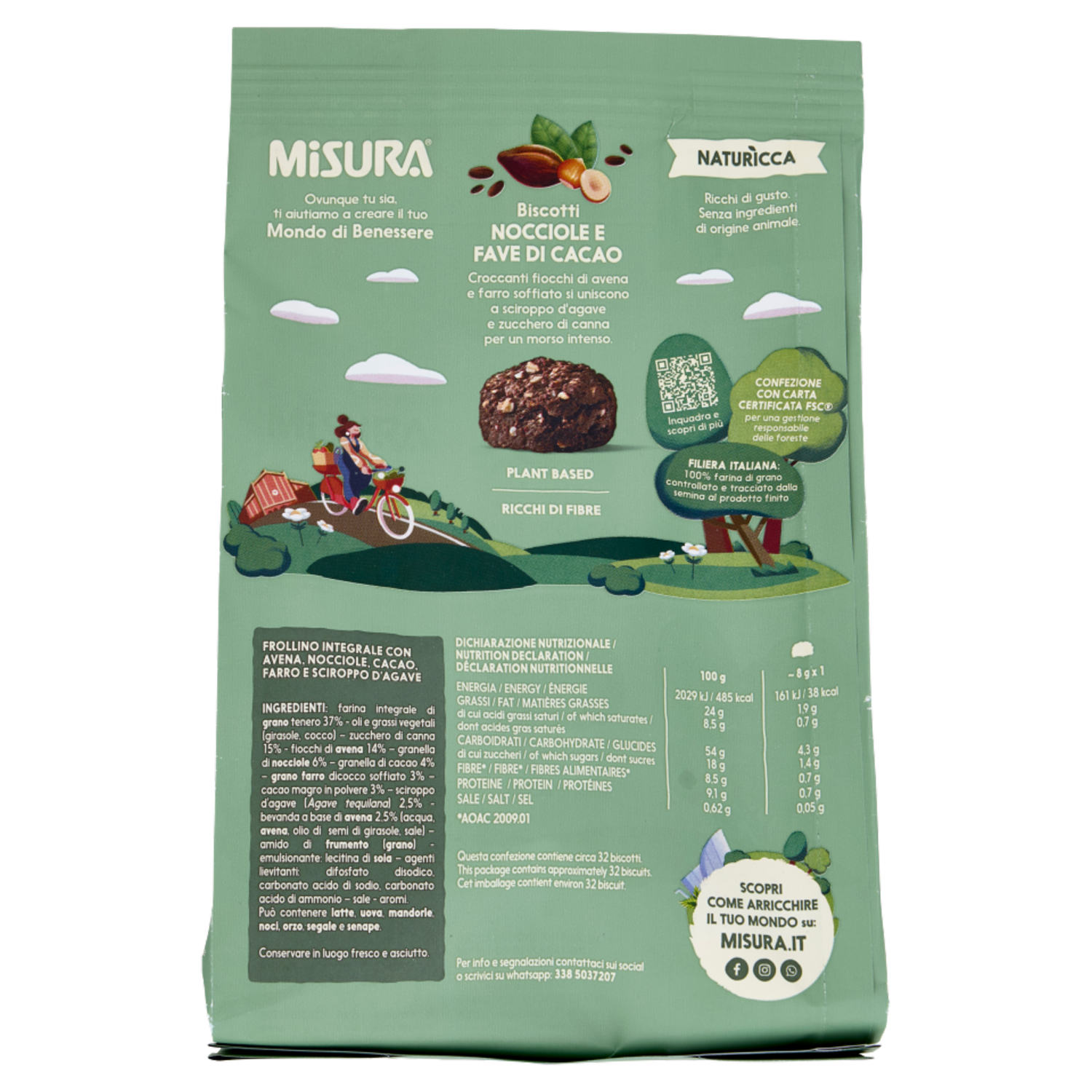 Misura Naturìcca Biscotti Nocciole e Fave di Cacao Plant Based 260 g