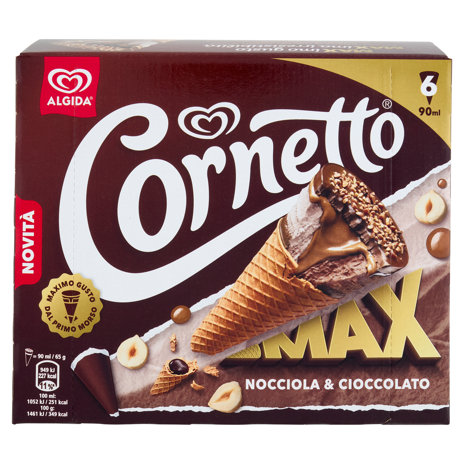 Cornetto Algida Max Nocciola & Cioccolato 6 Gelati 390 g