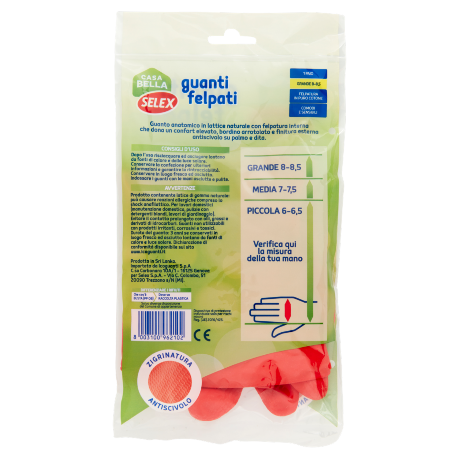 Selex Casa Bella Guanti Felpati Misura Grande (8-8,5)