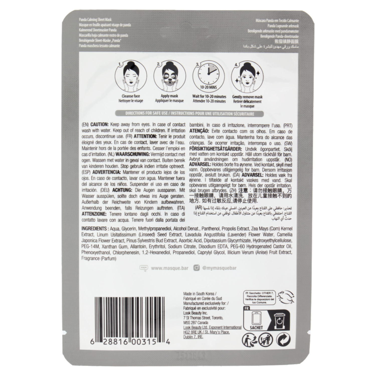 masqueBar Pretty Animalz Panda calming sheet mask 1 Mask 21 ml