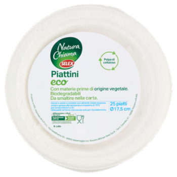 Selex Natura Chiama Piattini Piani in Polpa di Cellulosa Biodegradabili e Compostabili 25 pezzi