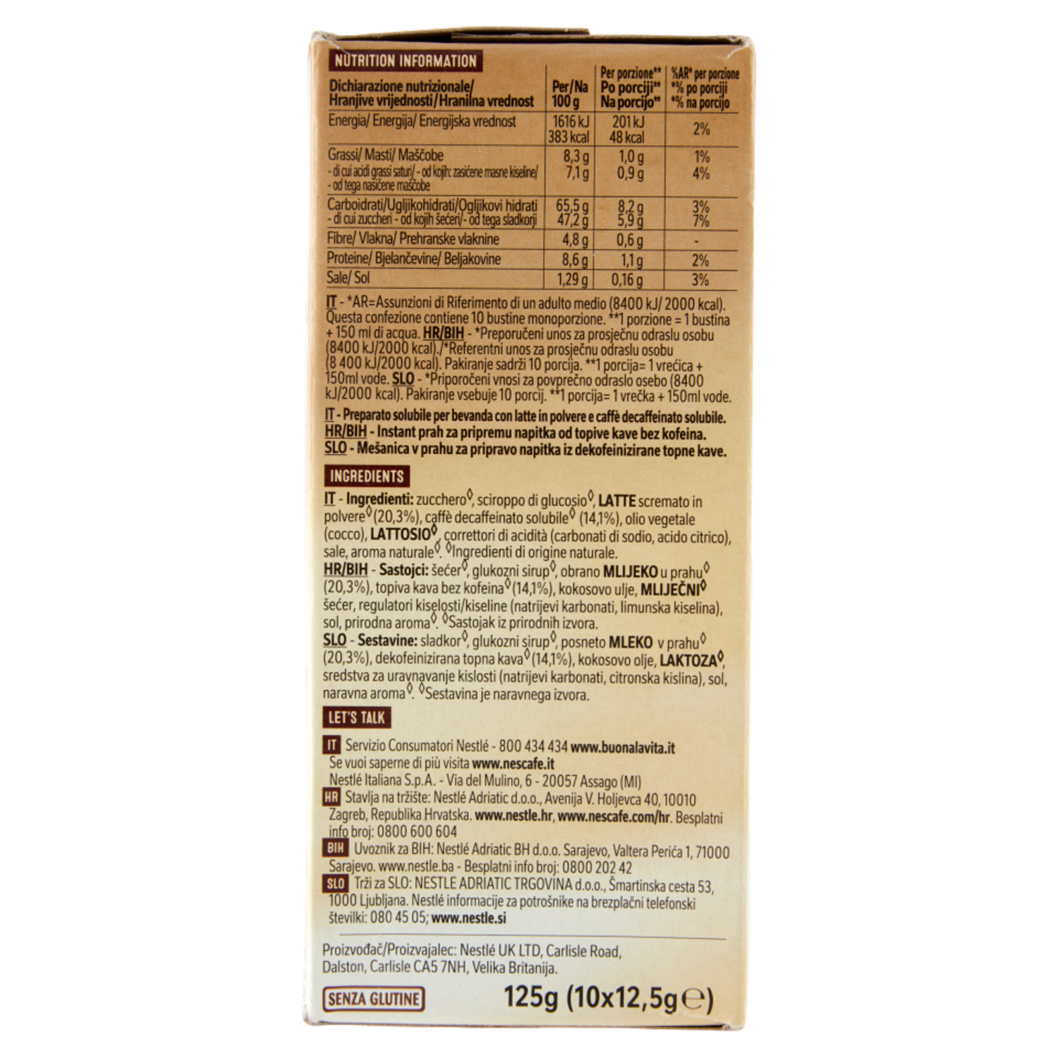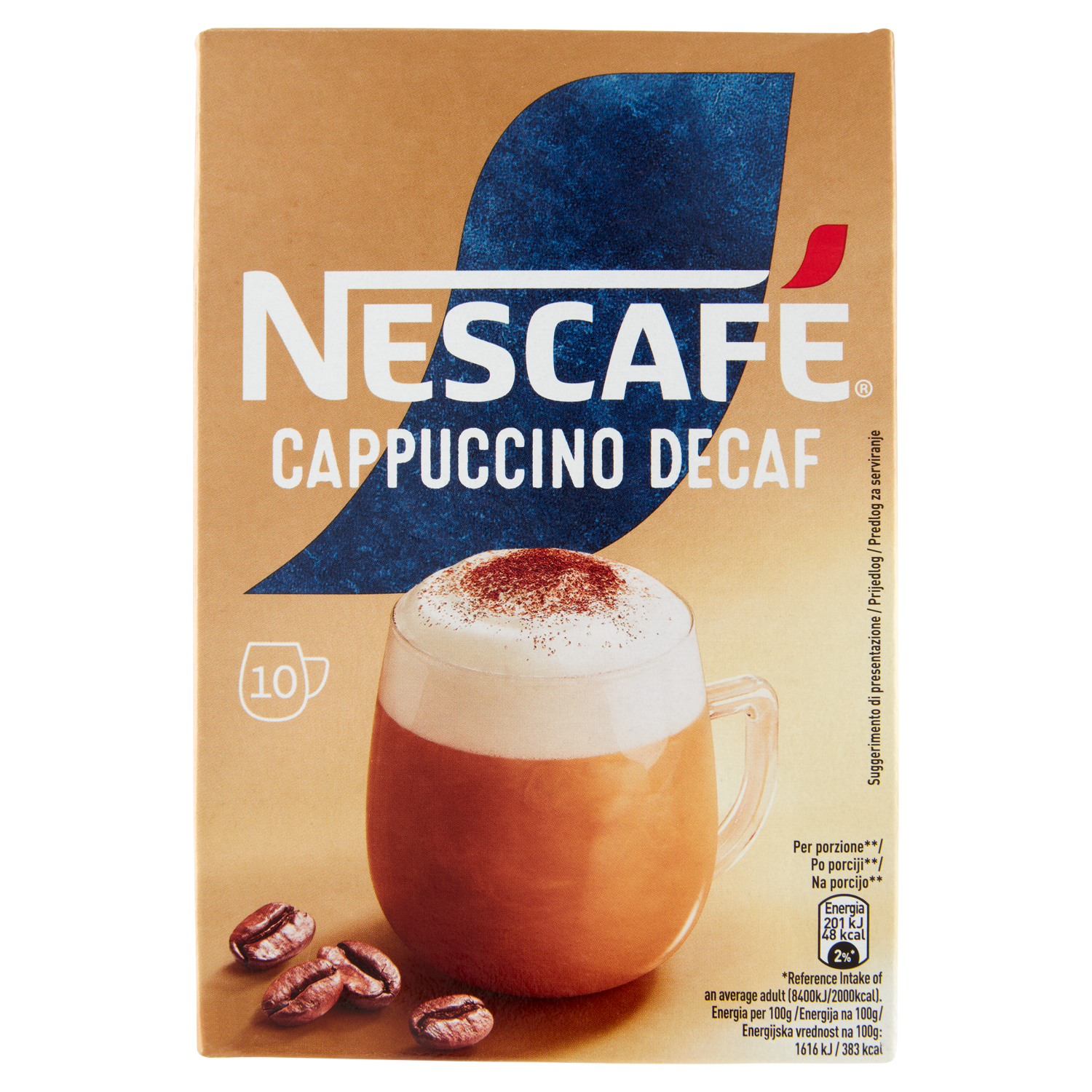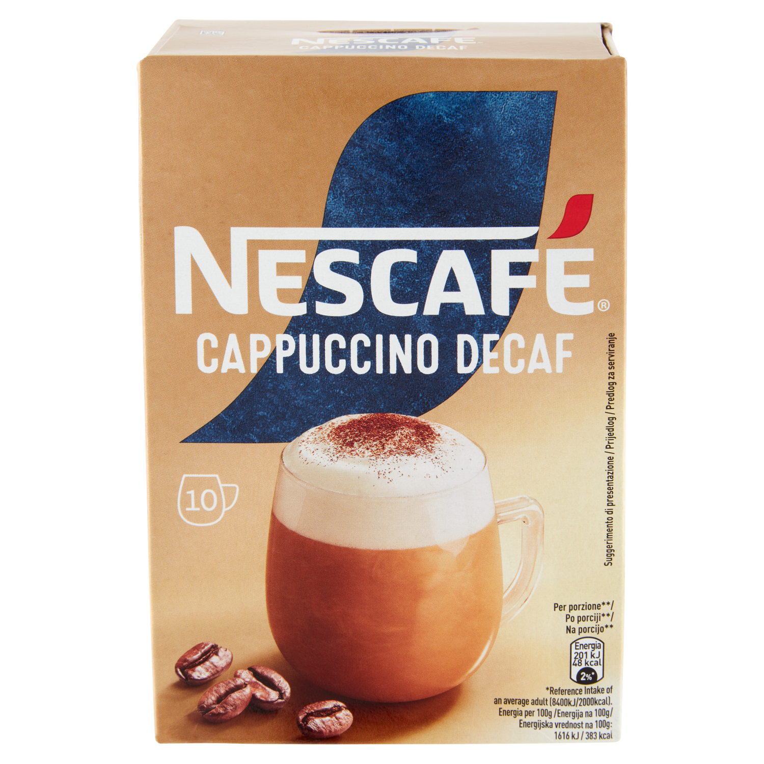 NESCAFÉ Cappuccino Decaf Solubile Decaffeinato, 10 Bustine 125g