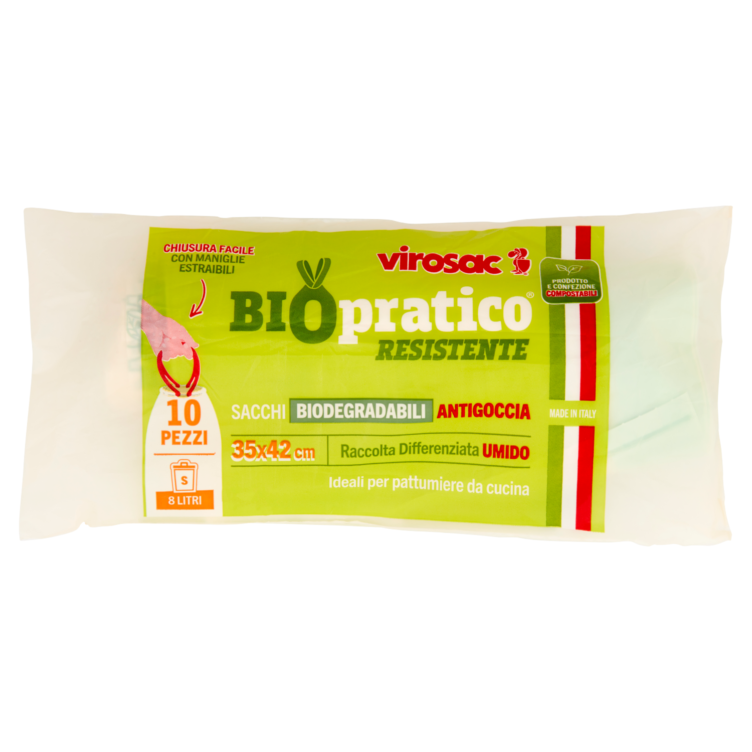 virosac Biopratico Resistente Sacchi Biodegradabili Antigoccia 35x42 cm 8 Litri S 10 pz