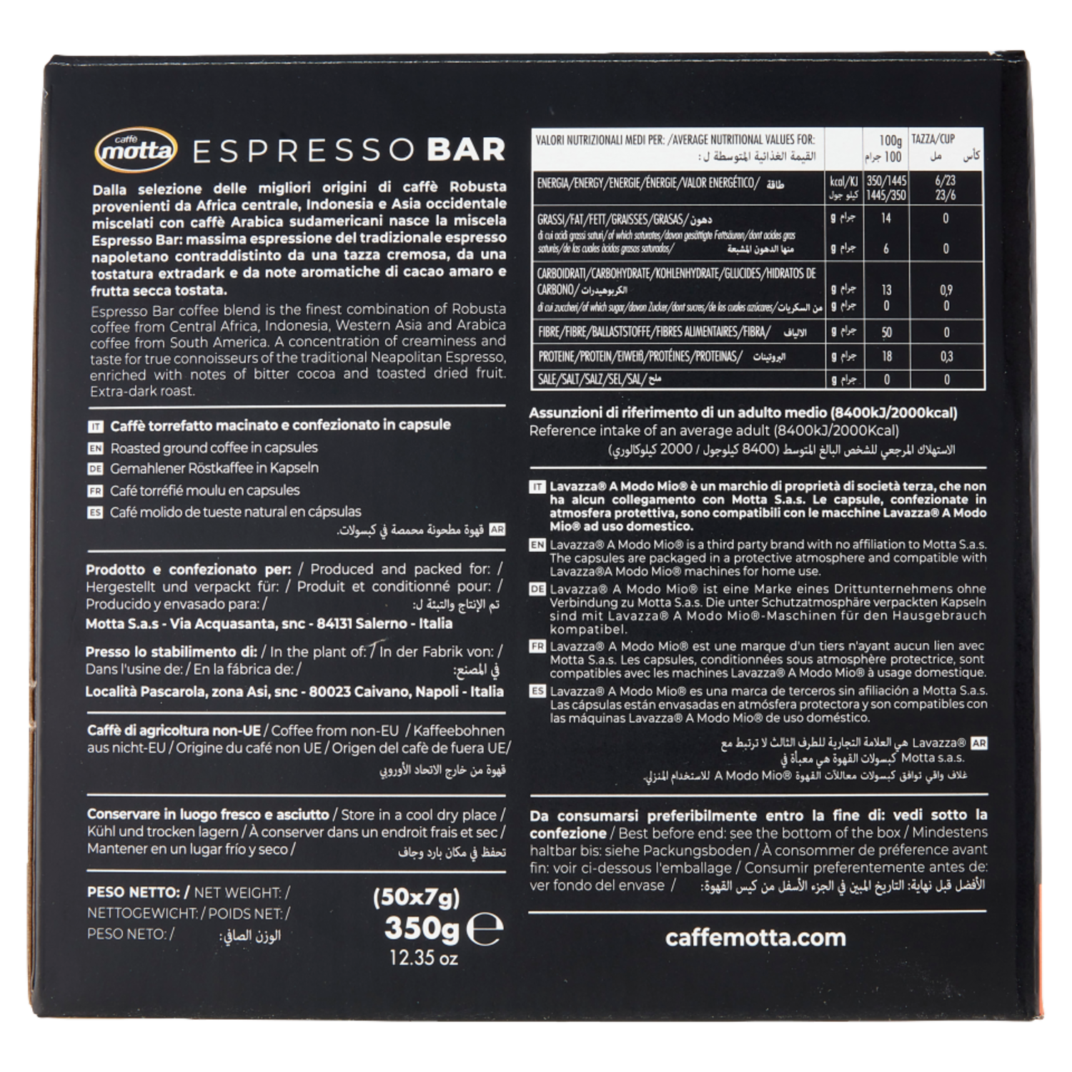 caffè motta Espresso Bar Capsule Compatibili con Macchine Lavazza A Modo Mio 50 x 7 g