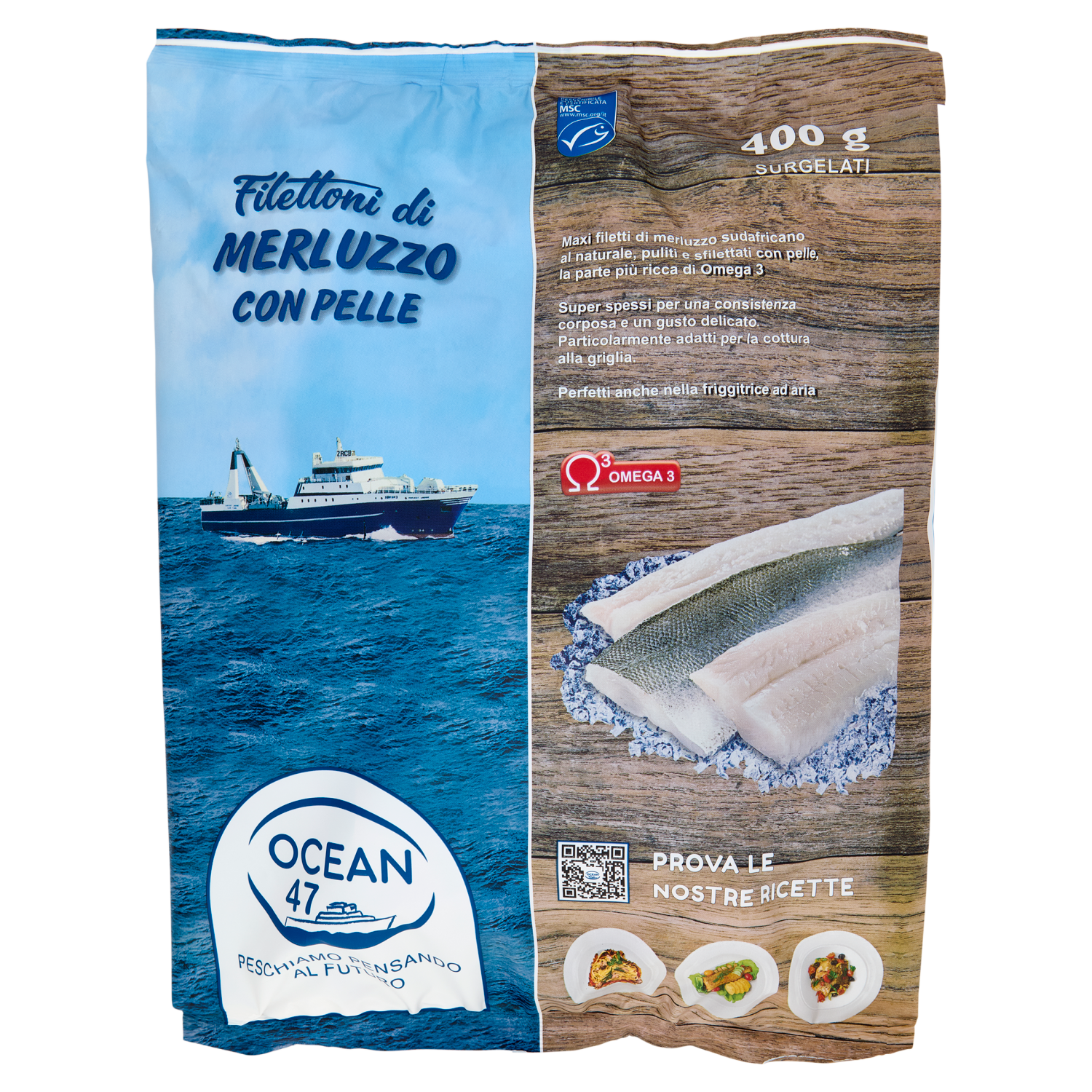 Ocean 47 Filettoni di Merluzzo con Pelle Surgelati 400 g