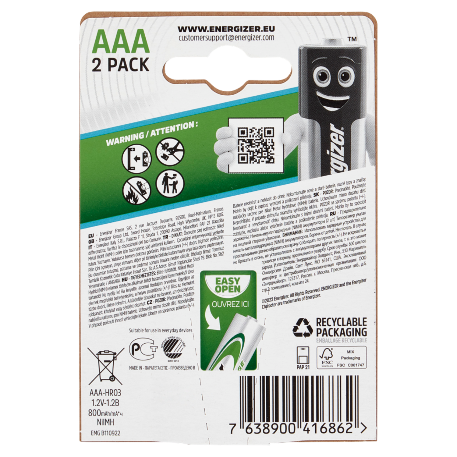 Energizer Accu Recharge Extreme AAA 2 pz