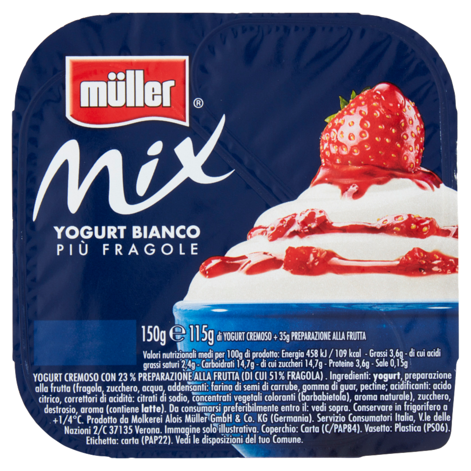 müller Mix Yogurt Bianco Più Fragole 150 g