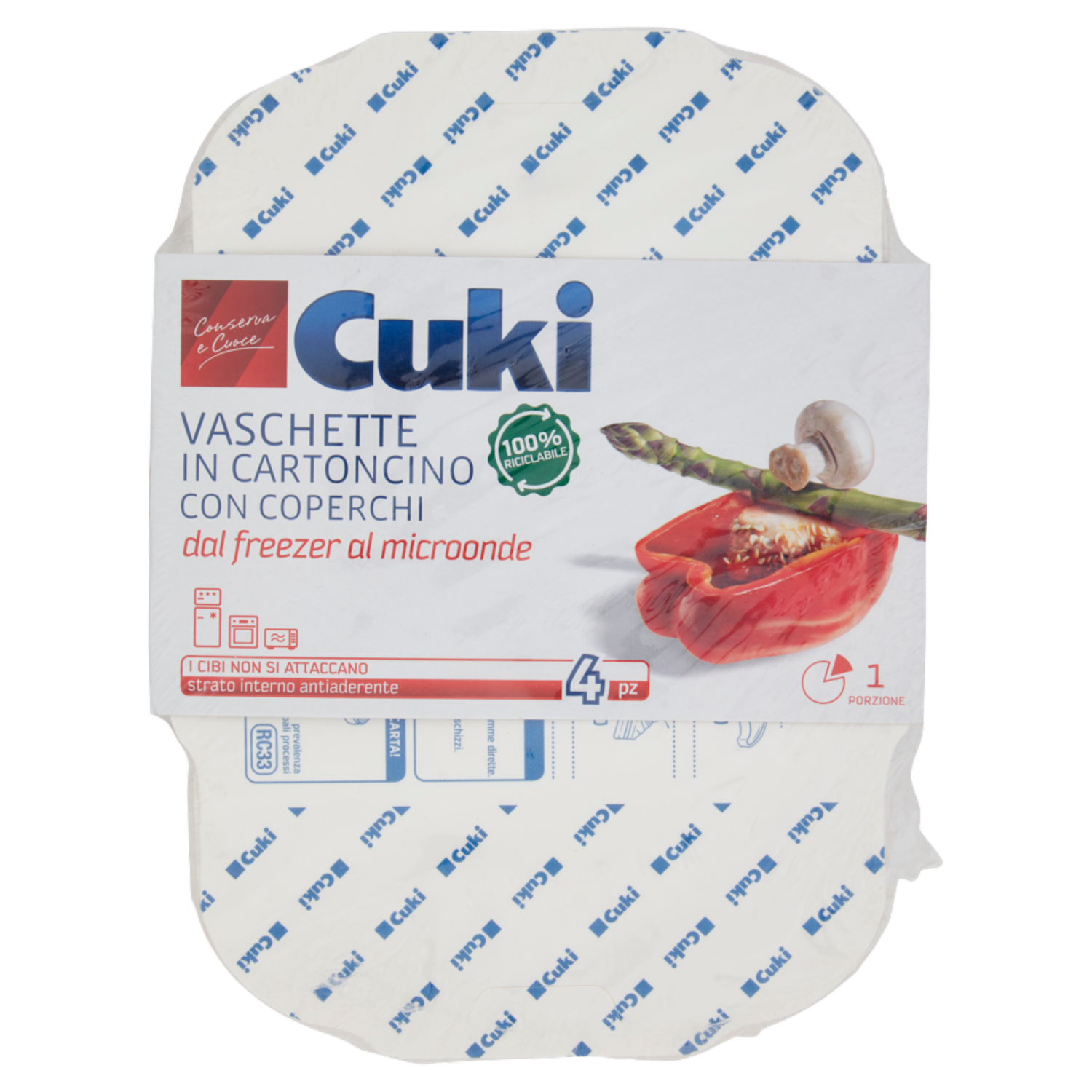 Cuki Conserva e Cuoce Vaschette in Cartoncino con Coperchi 1 Porzione 4 pz