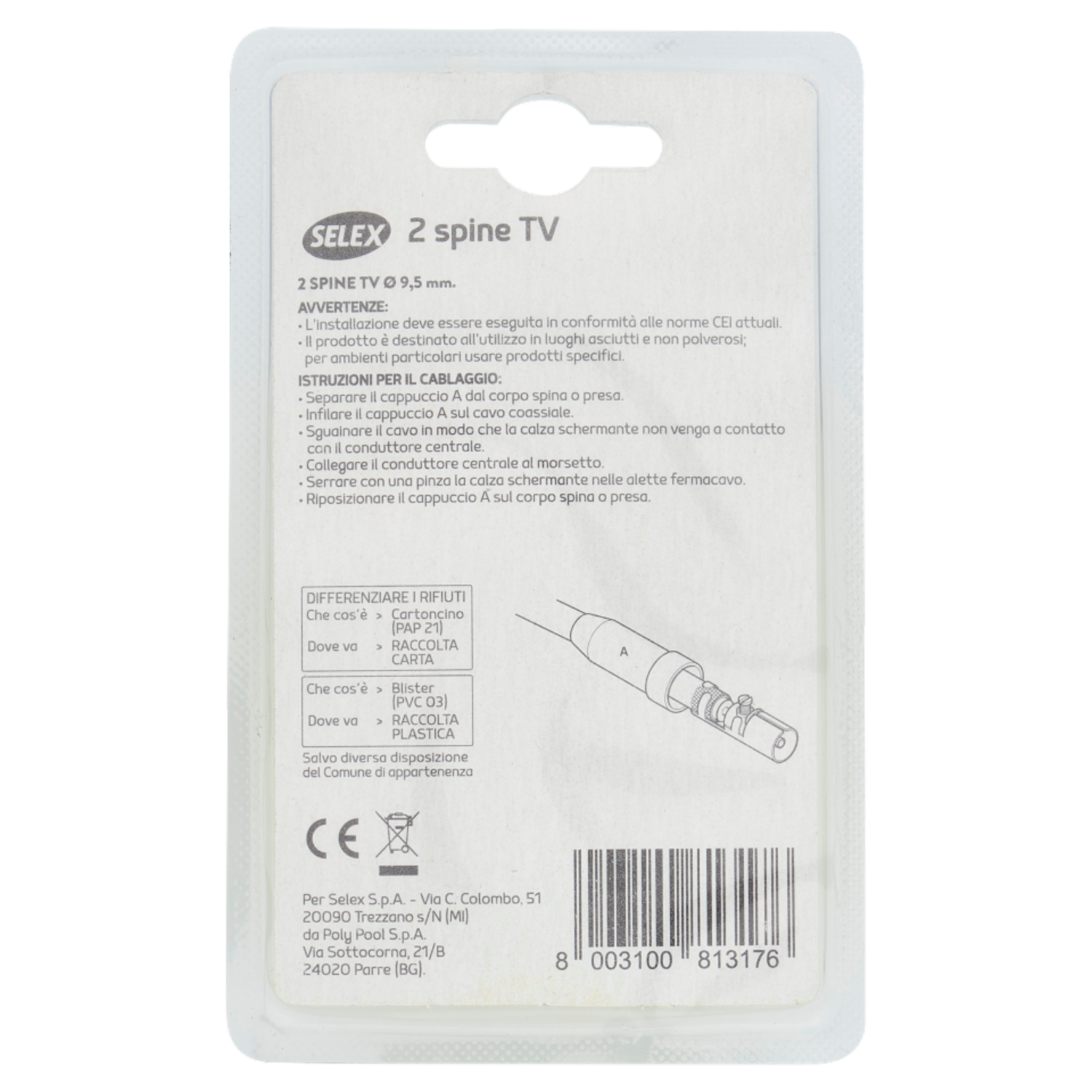 Selex Spina Tv Diametro 9,5 mm Bianco