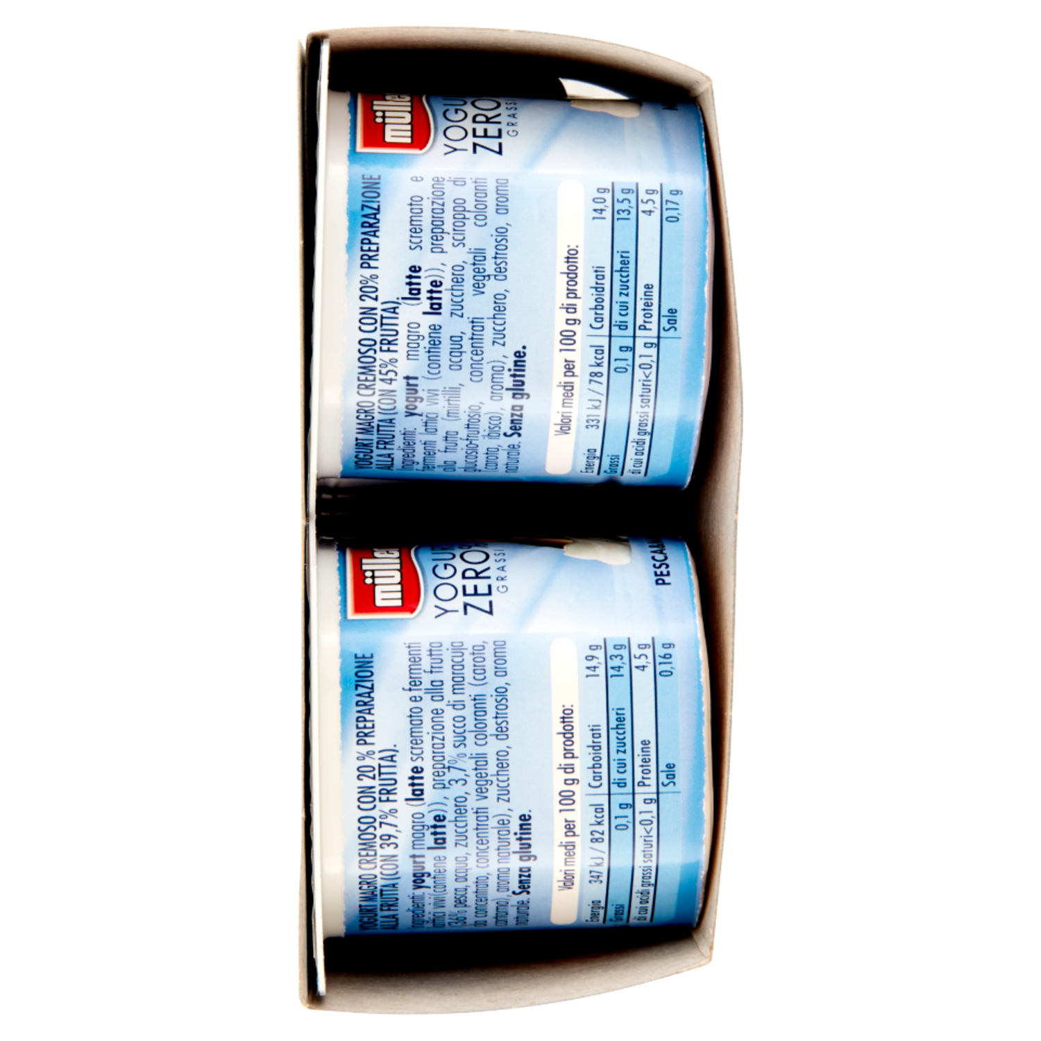 müller Yogurt Zero% Grassi Fragola, Pesca&Maracuja, Mirtillo in Pezzi - Vaniglia Naturale 8 x 125 g