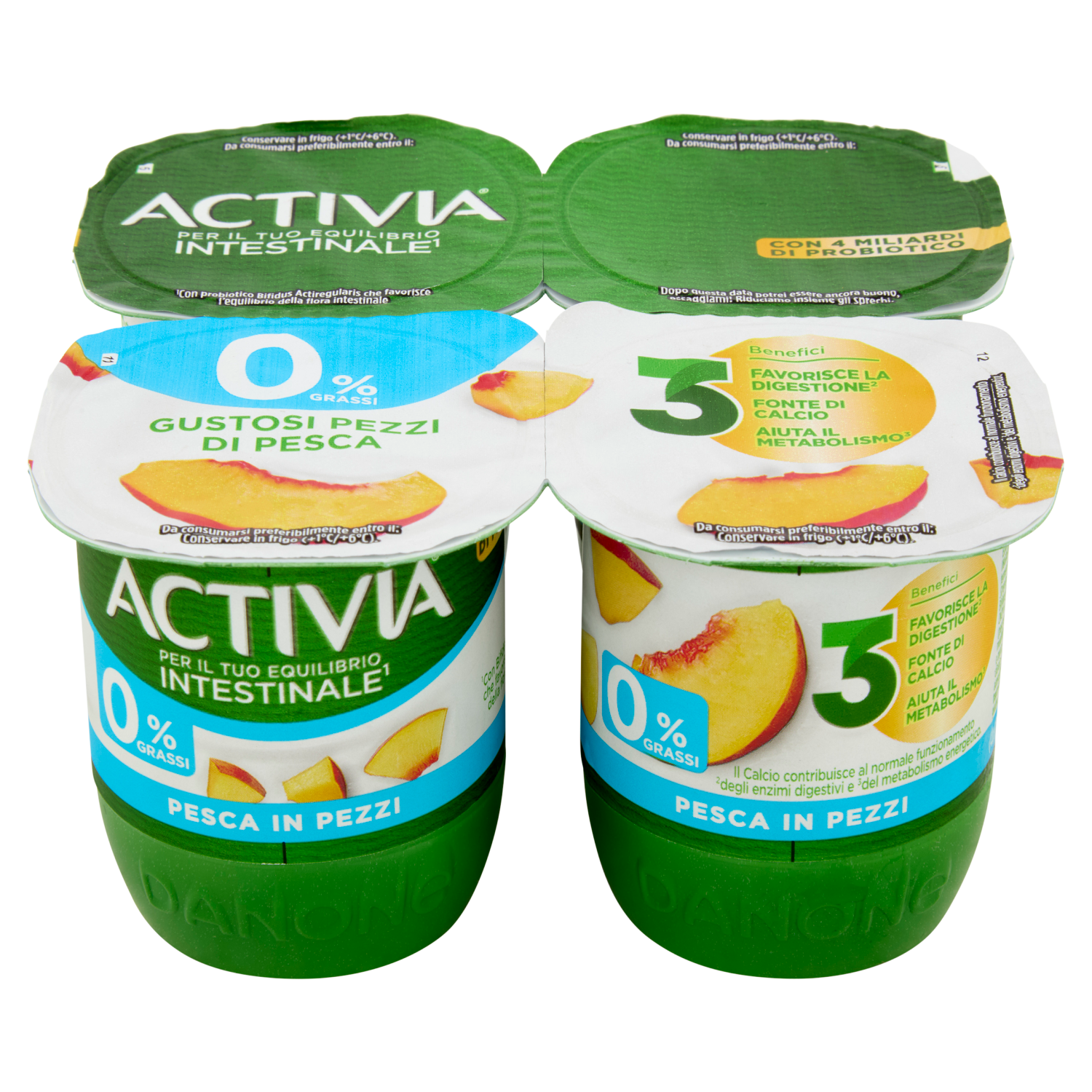 ACTIVIA Yogurt con Probiotico Bifidus, 0% Grassi, gusto Pesca, 4x125g