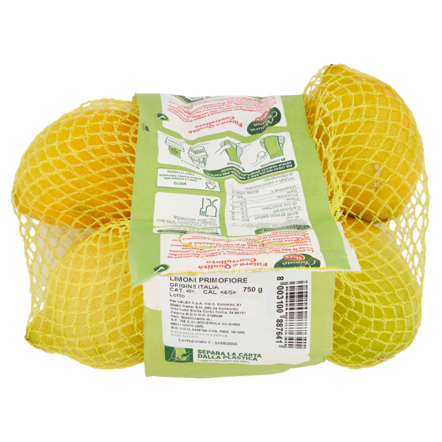 Separa la carta dalla plastica Leggi le istruzioni sul retro Cat. Cal. <4/5> Buccia non trattata in superficie in post-raccolta