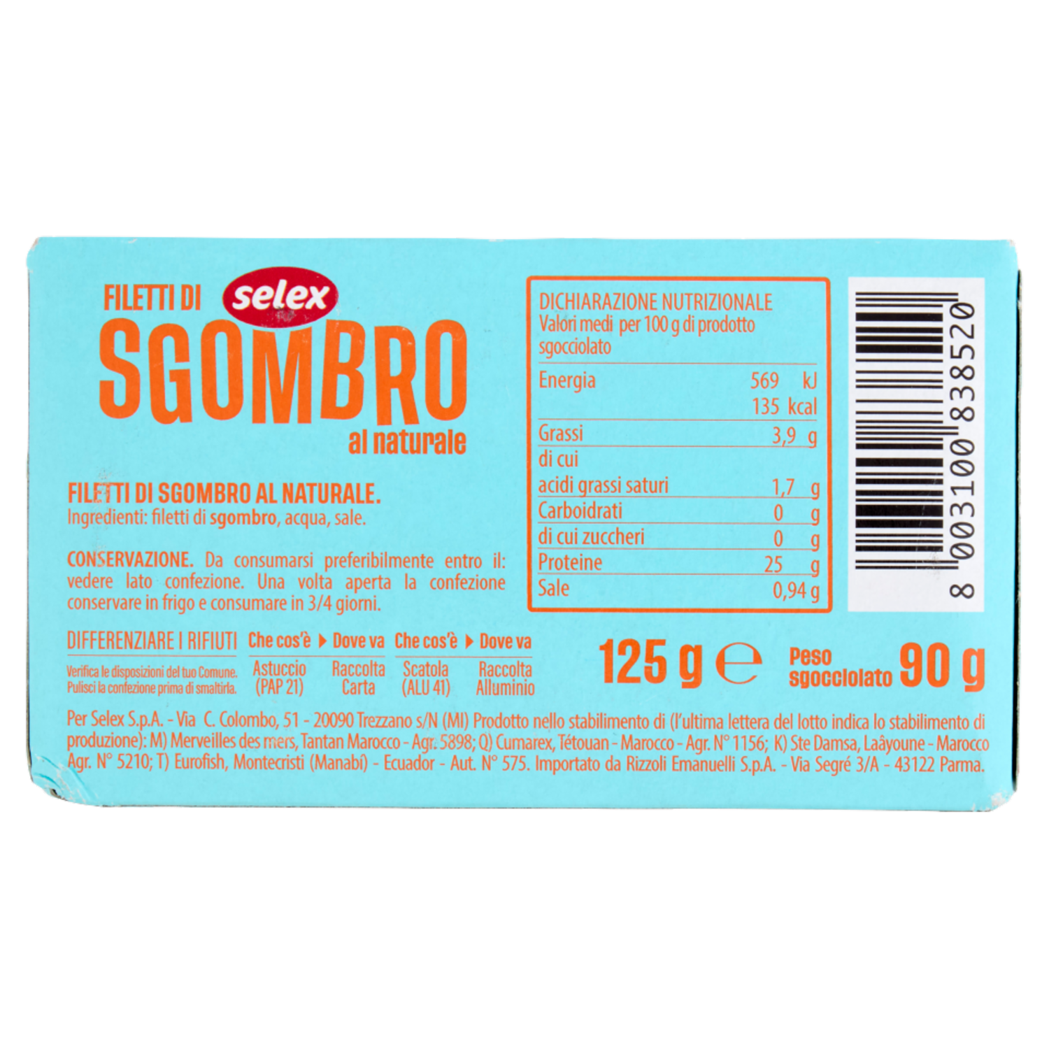 Selex Filetti di Sgombro al Naturale 125 g