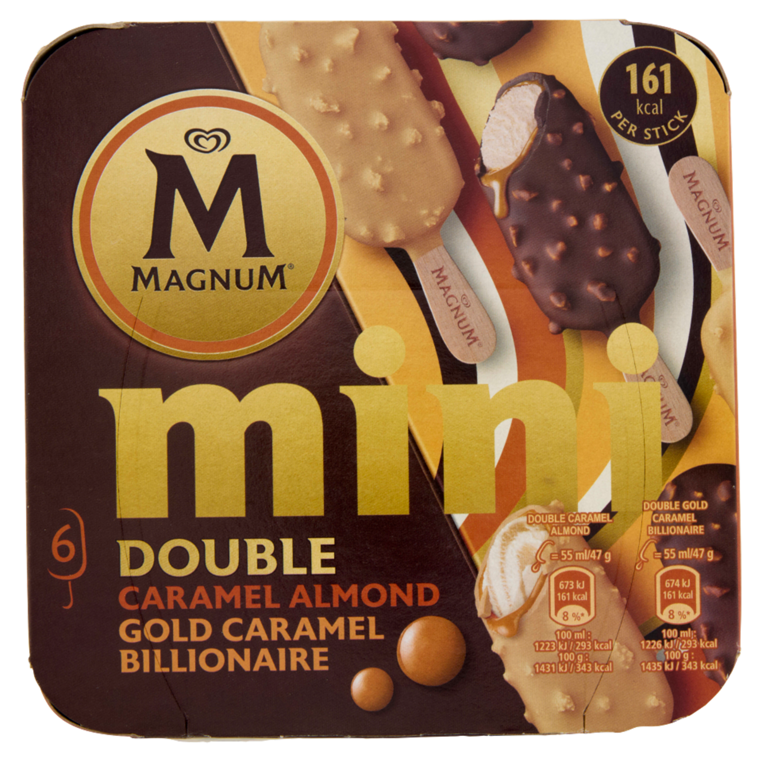 Magnum mini Double Caramel Almond - Gold Caramel Billionaire 6 gelati 282 g