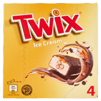 Twix Barretta Gelato con biscotto ricoperto di cioccolato al latte, Multipack da 4 x 34.2 g